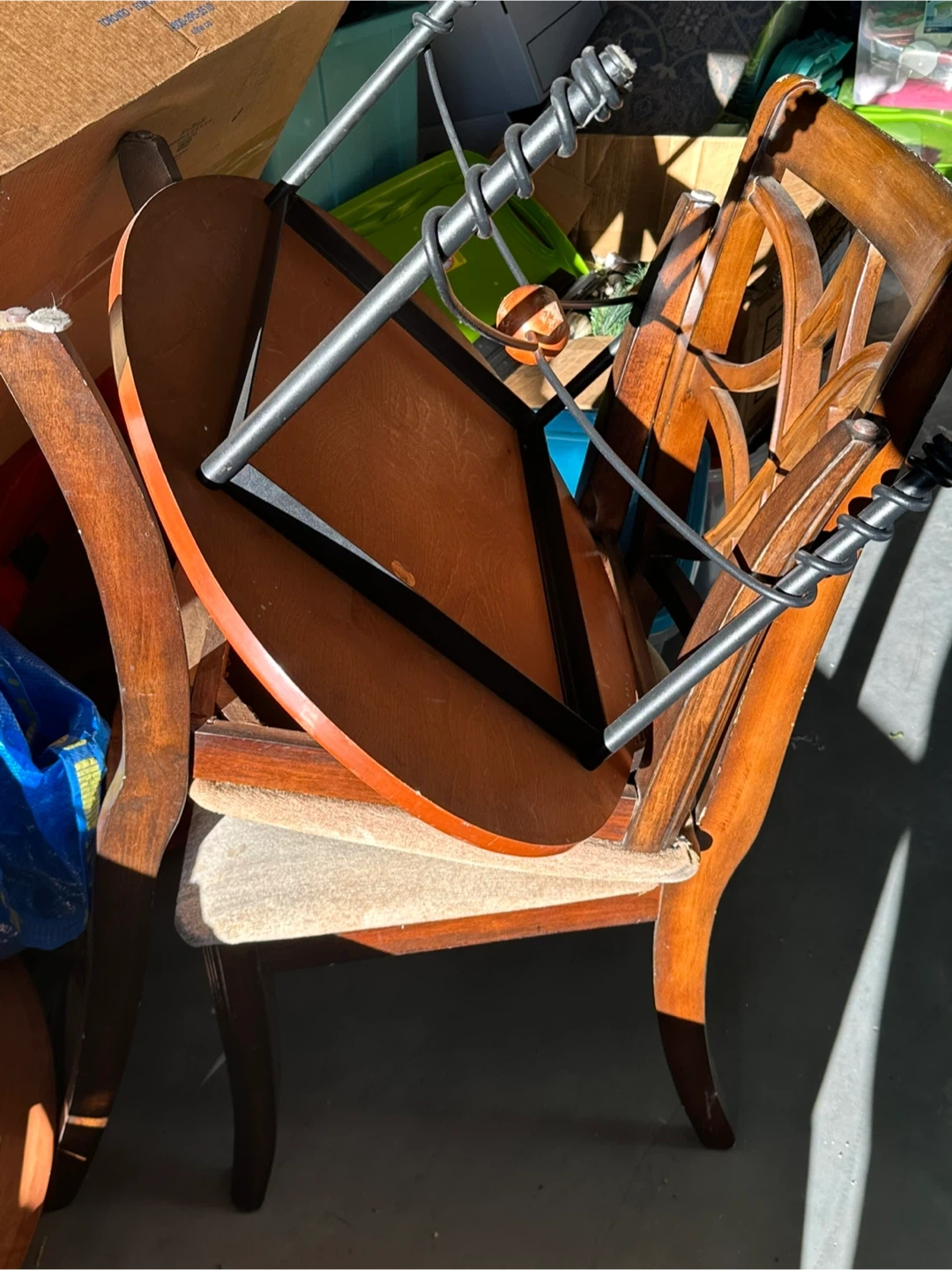 Set of two classic wooden dining chairs featuring comfortable upholstered seats. These chairs have a warm wood finish and elegant detailing. They're well-suited for a dining room or as accent chairs.