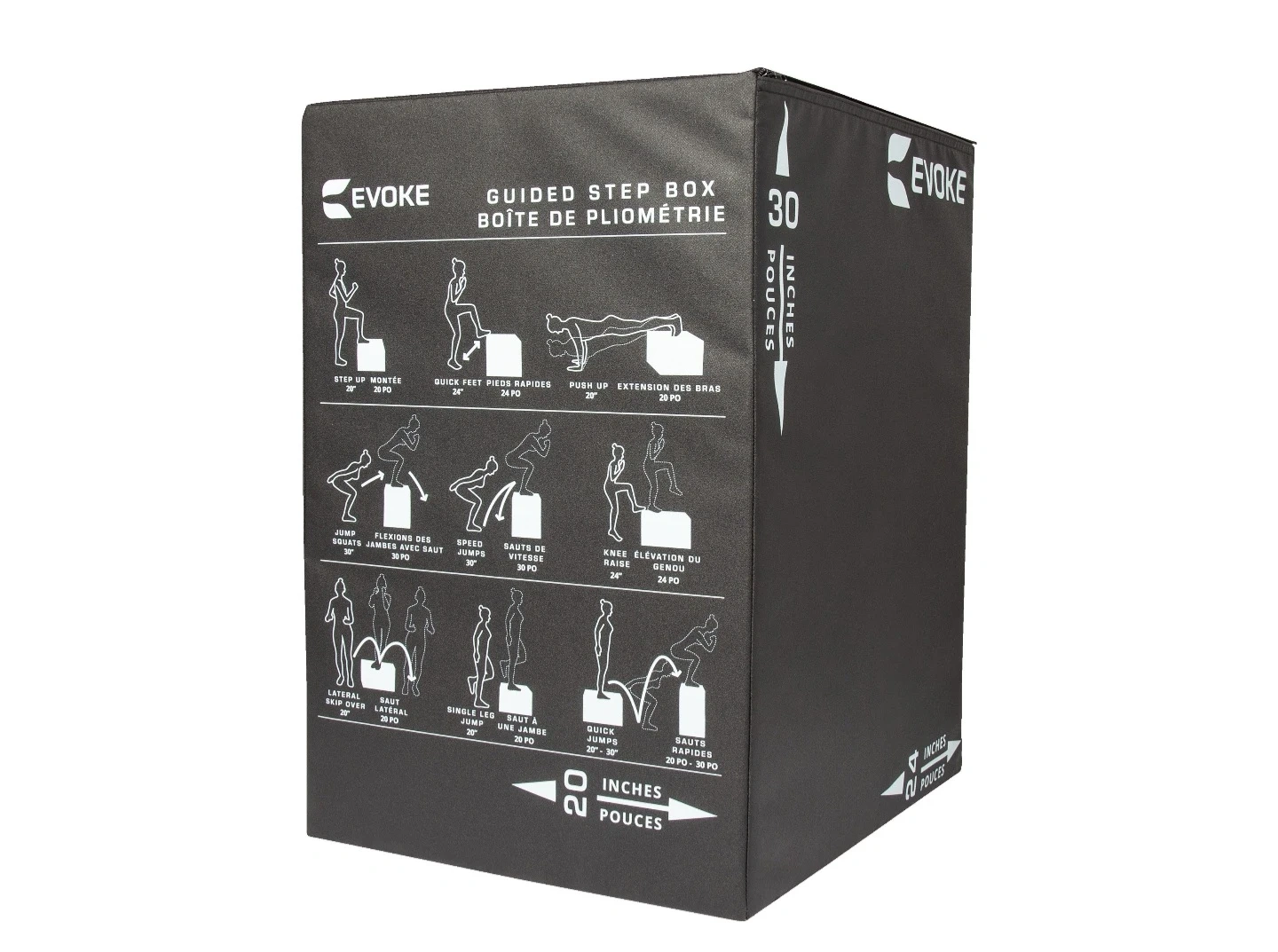 The foam step box features guided instructions and three height options (30", 24" and 20") so you can elevate your full-body workout