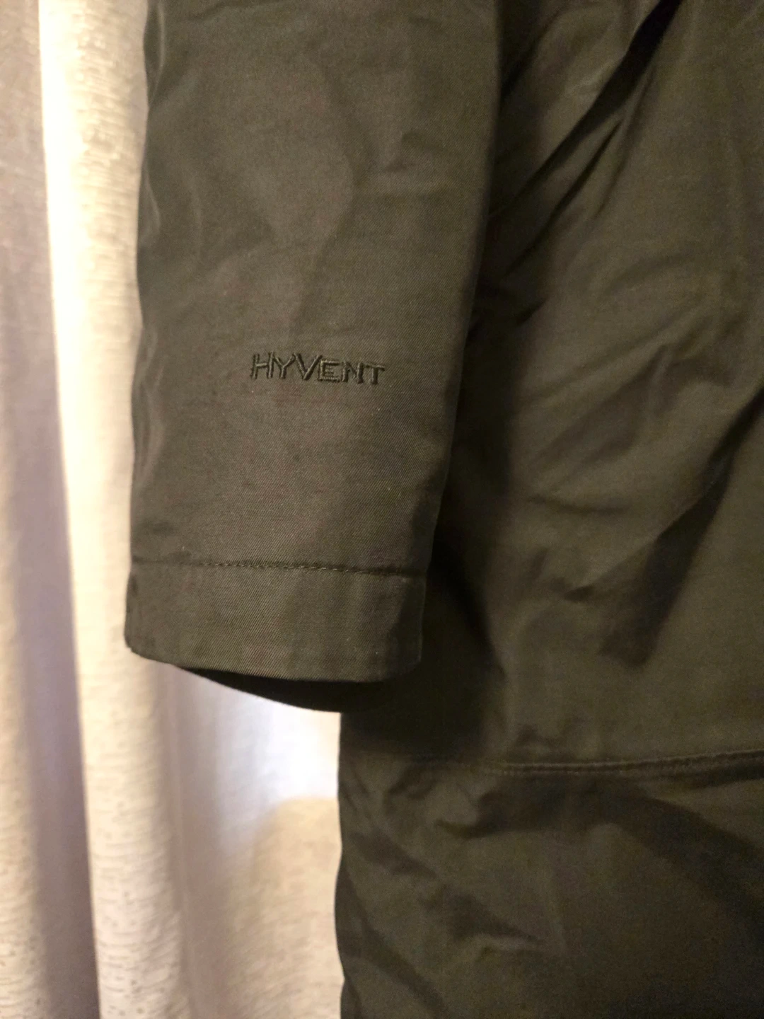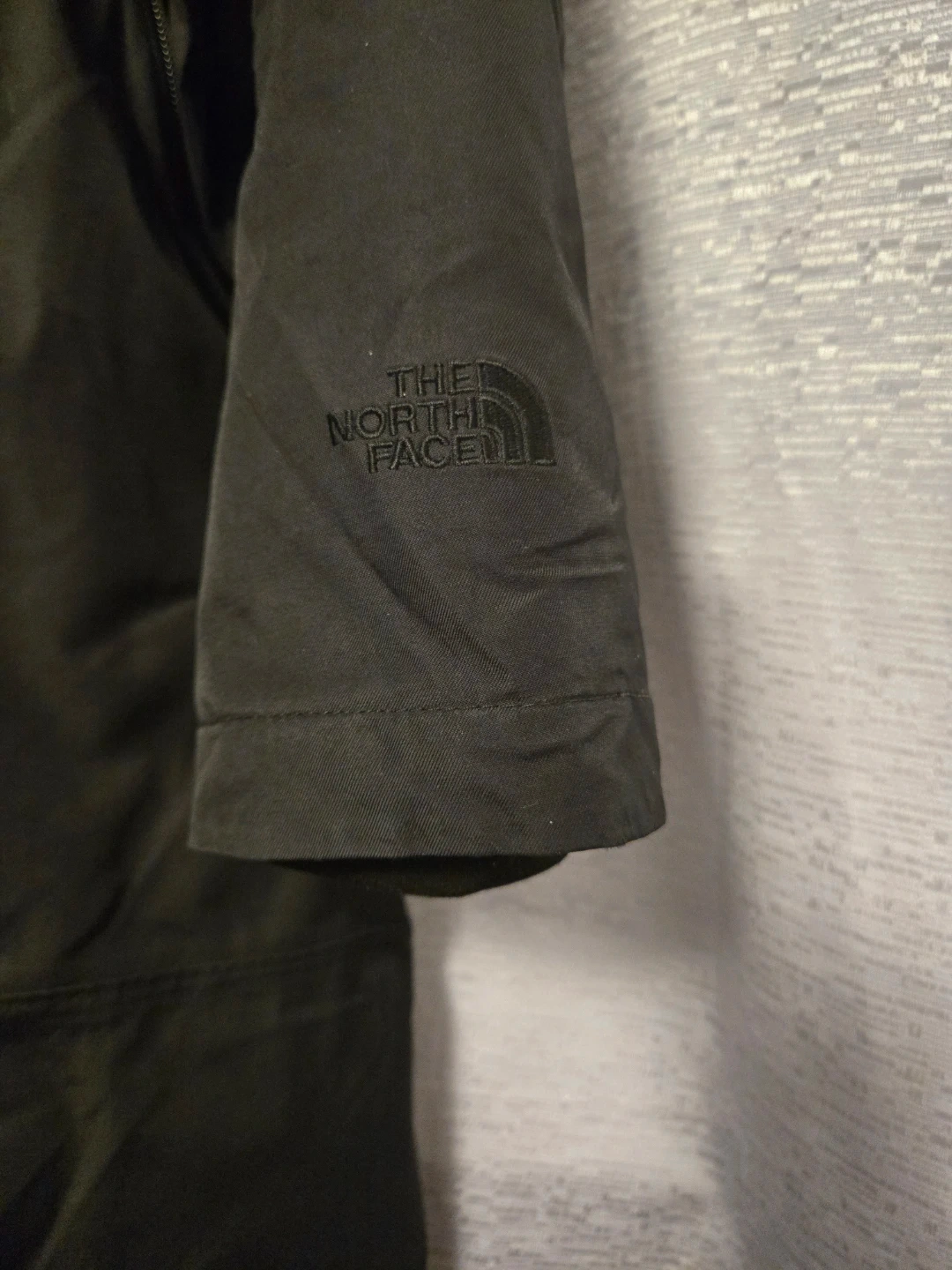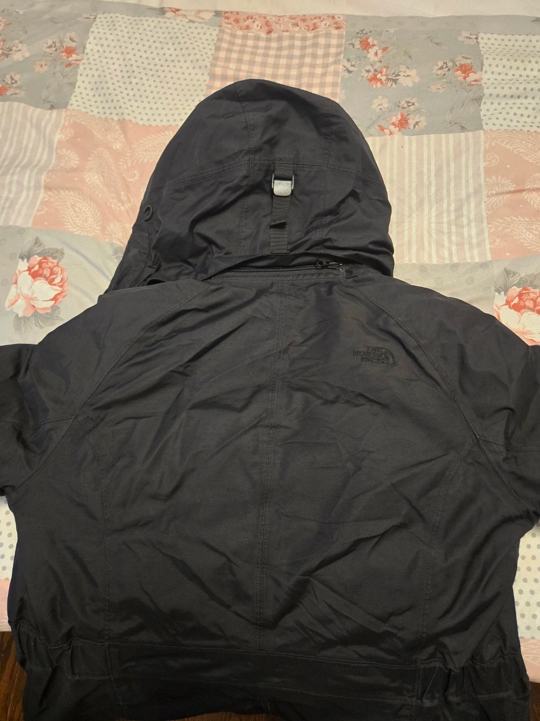 This is a black, hooded winter jacket from The North Face. It's a women's size small with a full zip closure. The jacket contains down fill for warmth. It's made with DryVent material.
