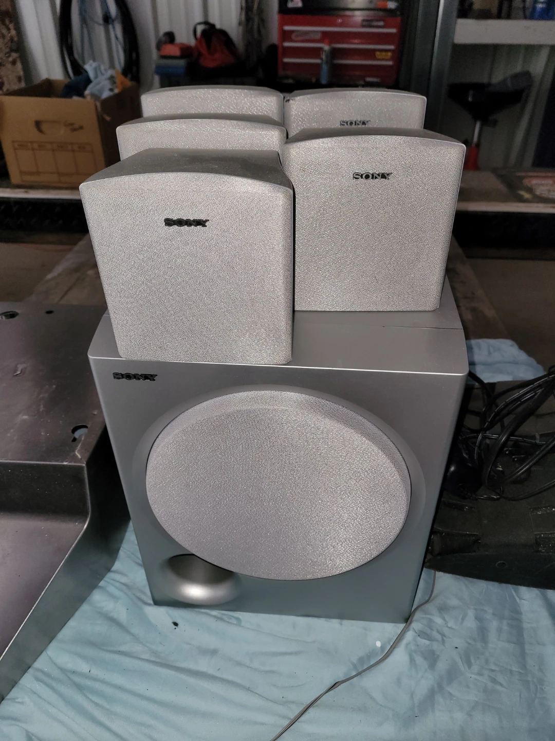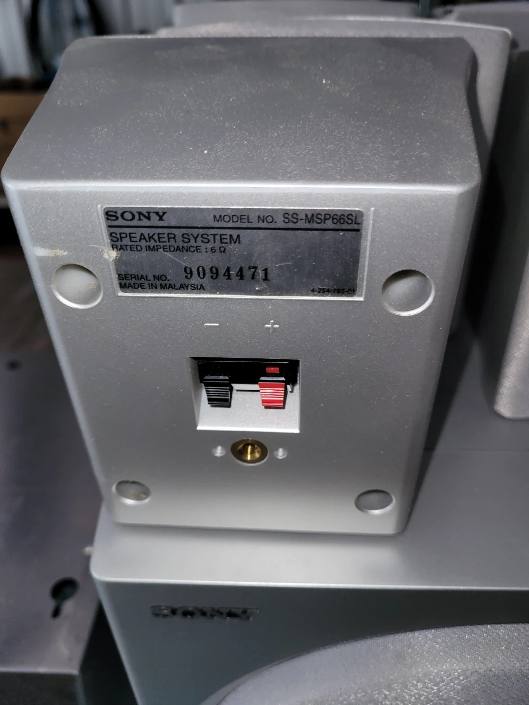 This is a Sony speaker system with a subwoofer. It's a 5.1 channel system. The impedance is rated at 6 ohms.