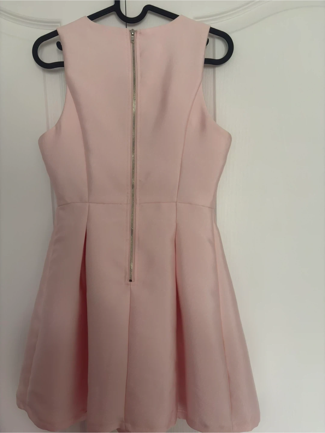 Cute pink sleeveless dress by Chelsea. It's a fit and flare style with pleats on the skirt. Zipper closure at the back. This dress is lovely for a party or special occasion!