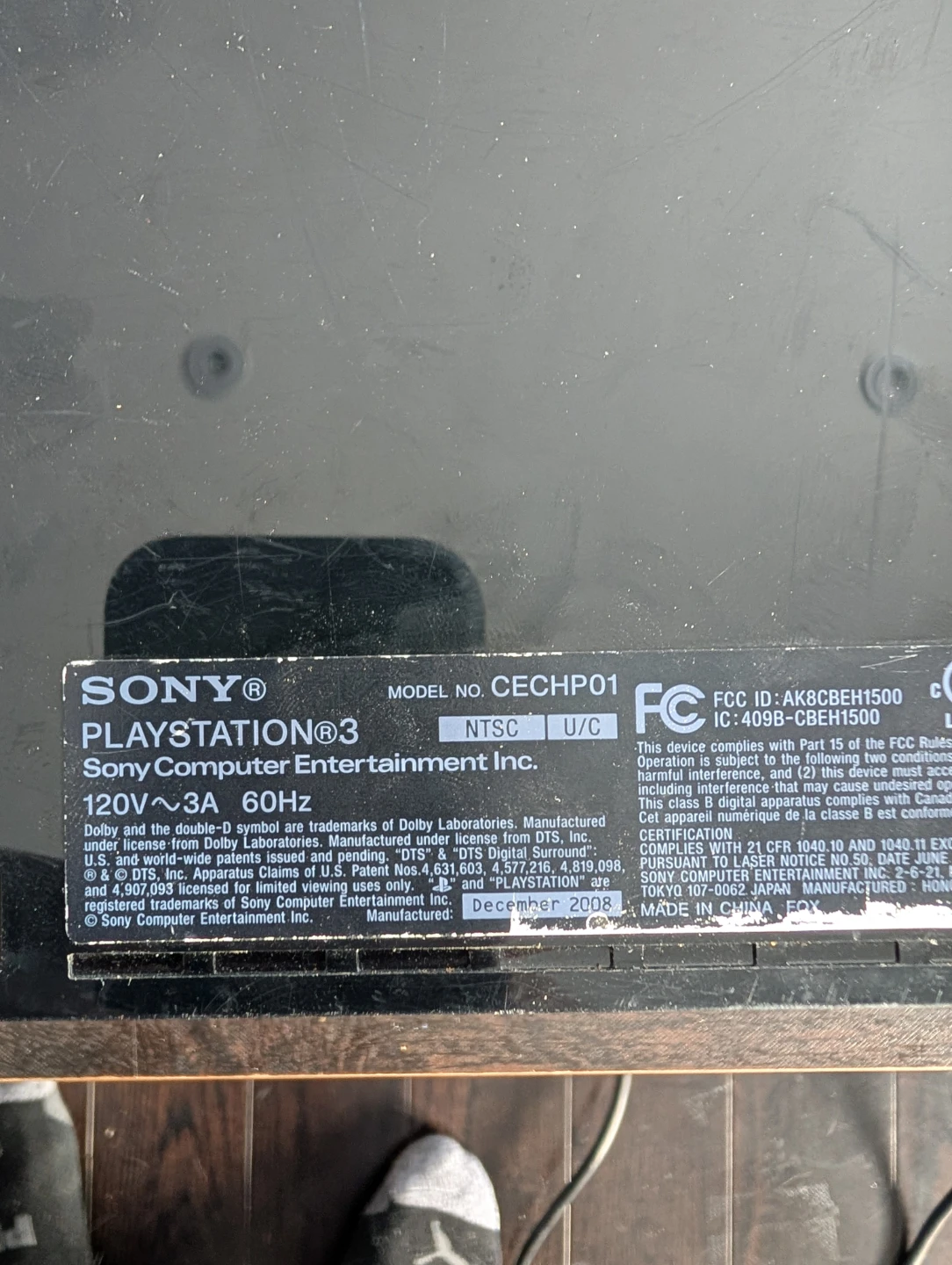 This is a black Sony PlayStation 3 console, model CECH-P01. It's manufactured in December 2008. The system software is version 4.85, and it has 149 GB of storage with 50 GB free. This console is great for gaming and media playback!