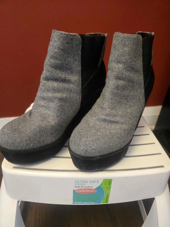 2- Shellys London wedge platform boots in grey and black with stretchy elastic sides. Size 8. In great condition.