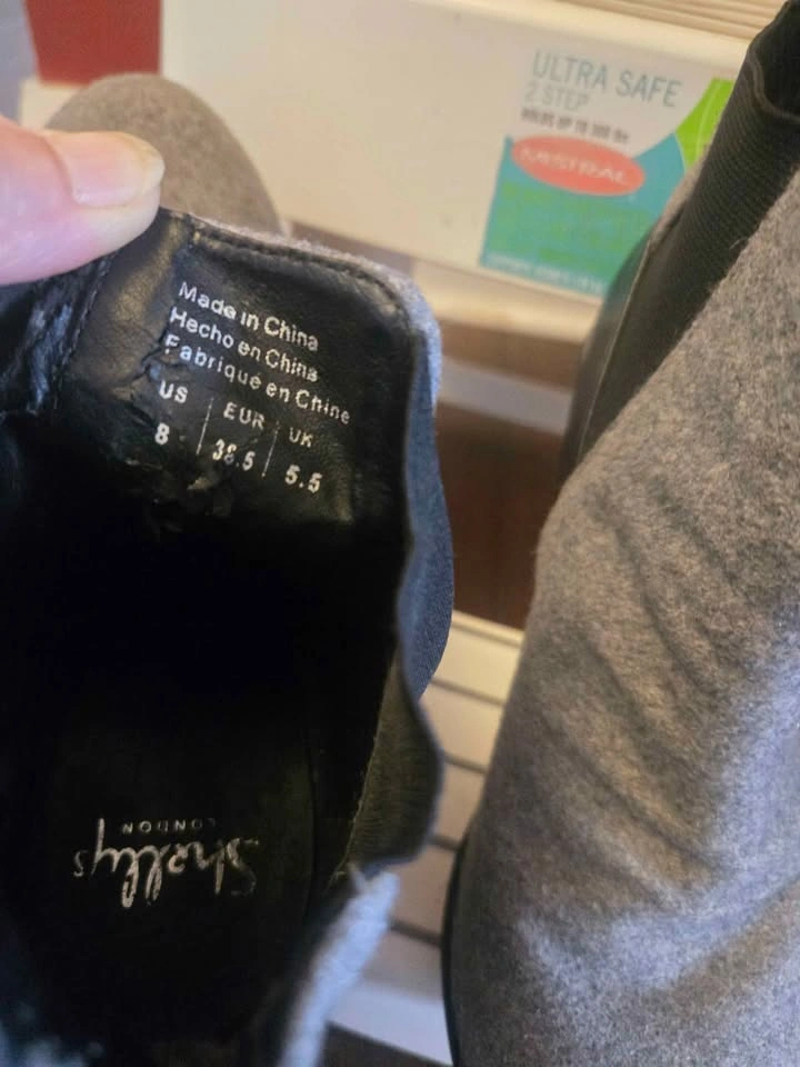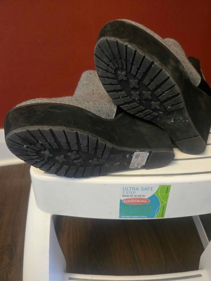 2- Shellys London wedge platform boots in grey and black with stretchy elastic sides. Size 8. In great condition.