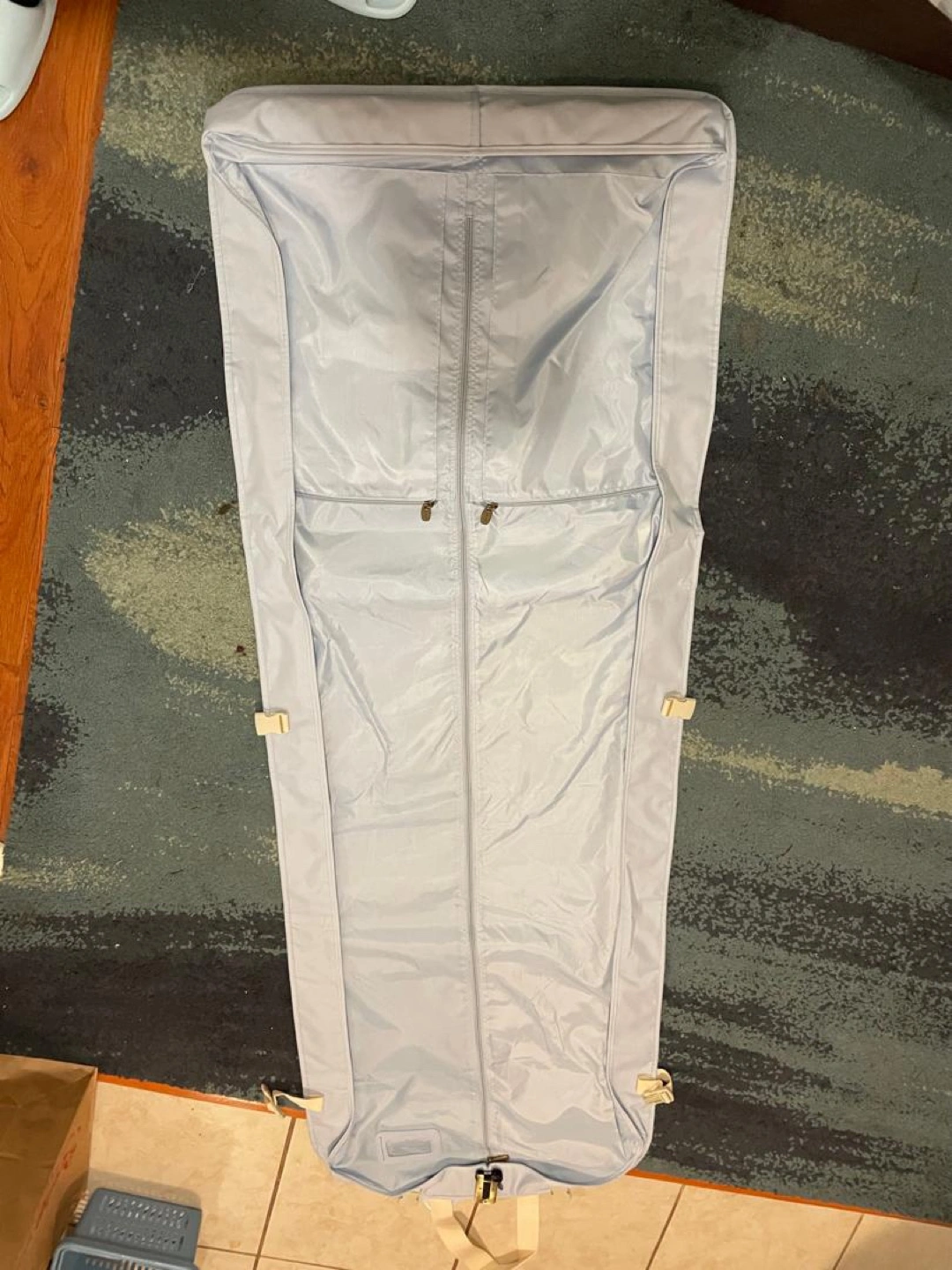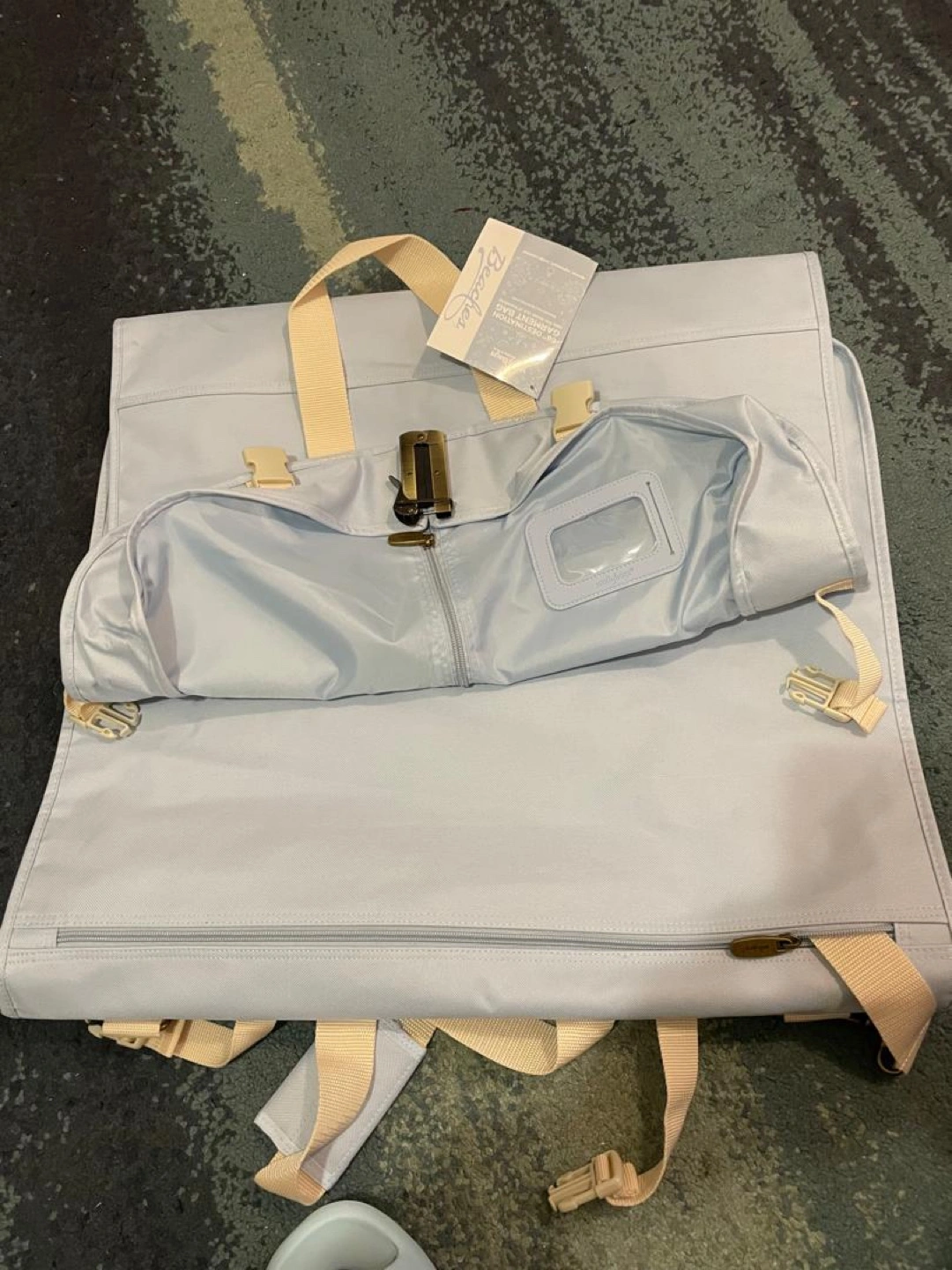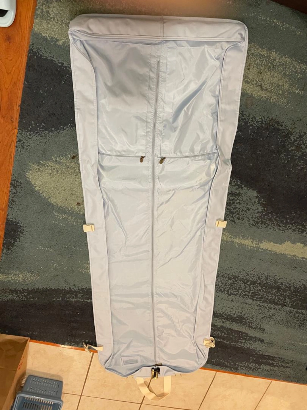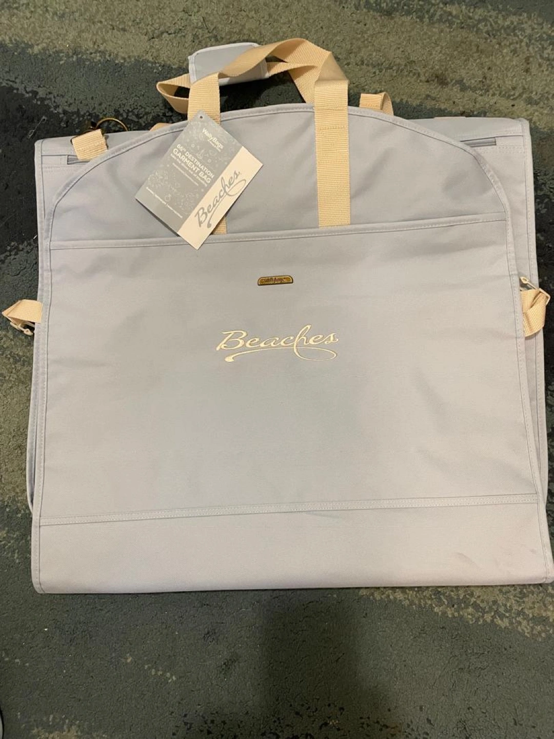 Selling a Beaches garment bag in excellent condition! It's a light blue colour with beige straps. Perfect for travel and keeping your clothes wrinkle-free