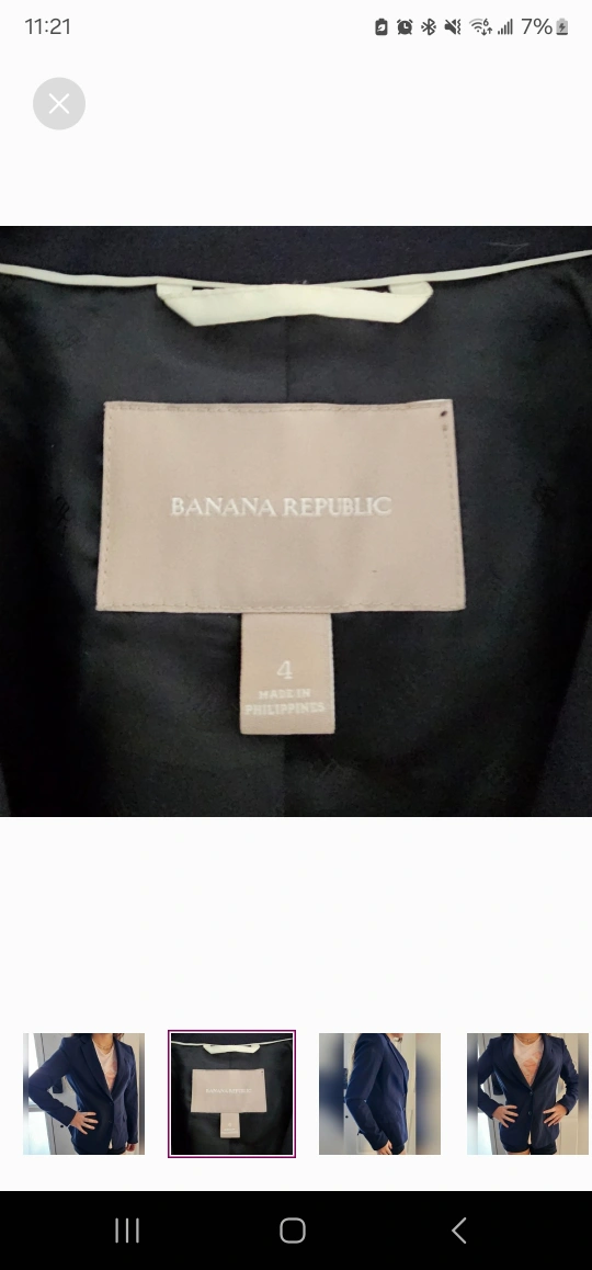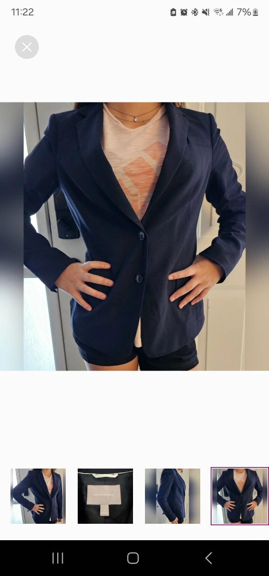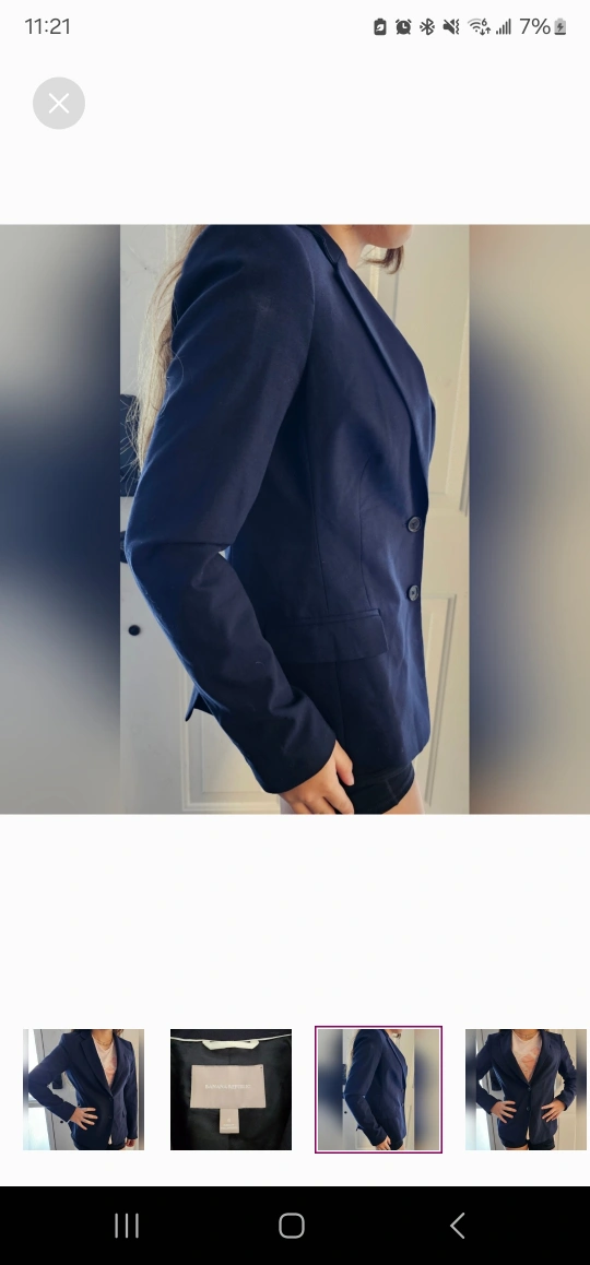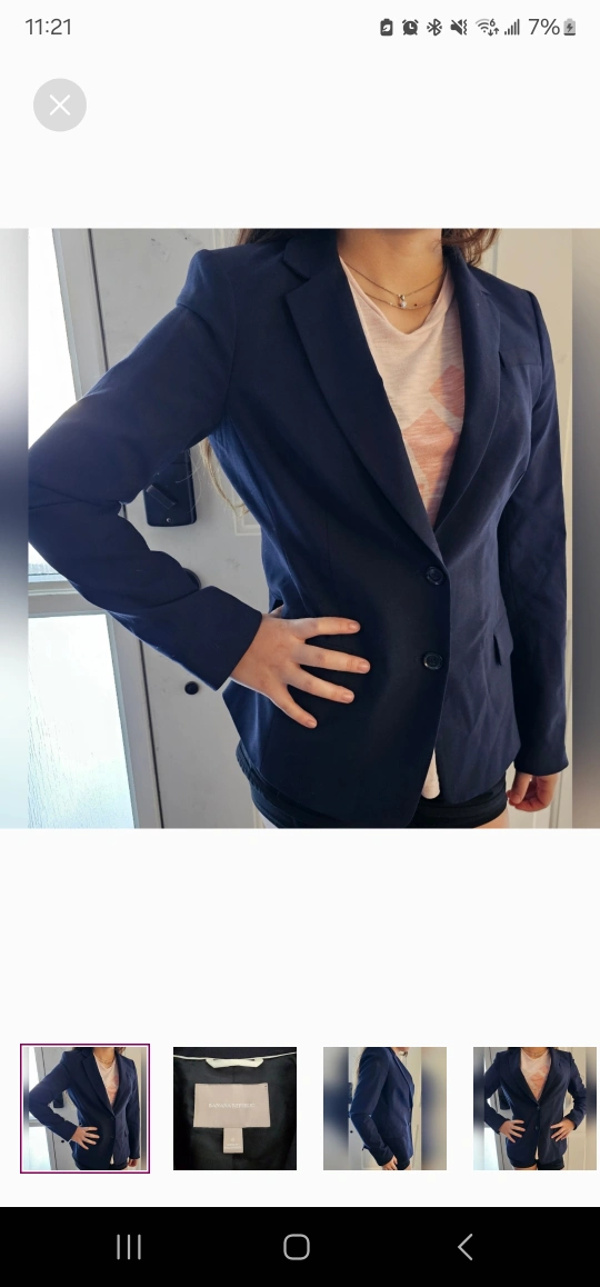 Women's navy wool blazer. Size 4. Single-breasted. Two pockets. Long sleeves. Good condition.