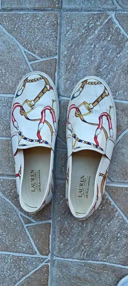 Well maintained and well kept white Ralph Laurens. Faint marks on the top right shoe. Retailed for around $60-70. I'm a size 8 and these fit very tightly for me, so they would likely fit a size 7-7.5 best.