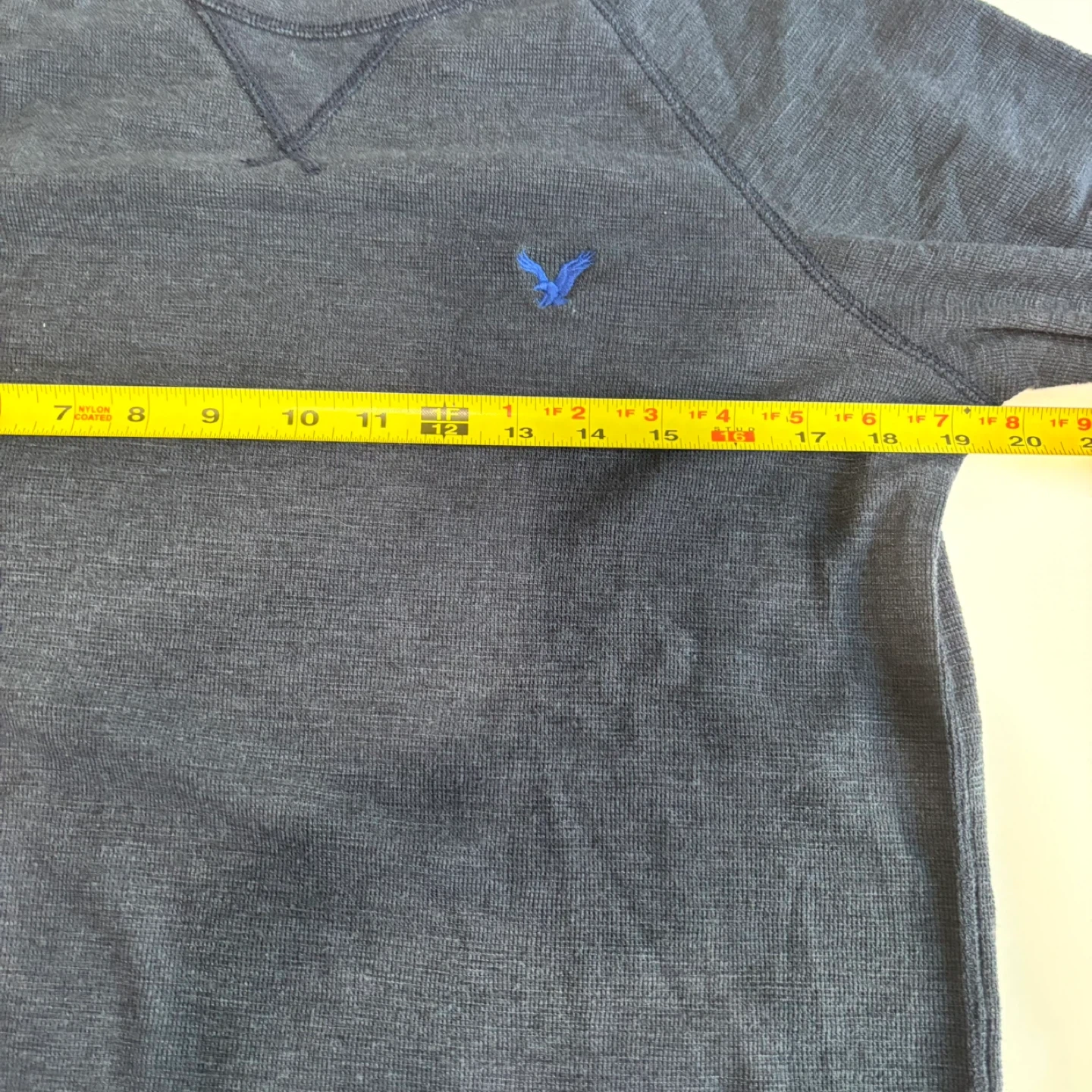 Selling a gently used American Eagle Heritage Thermal shirt in size Large. It's in great shape and perfect for layering during the cooler months. The shirt features the classic American Eagle logo and a comfortable fit. The material feels soft and cozy, making it a great addition to your wardrobe