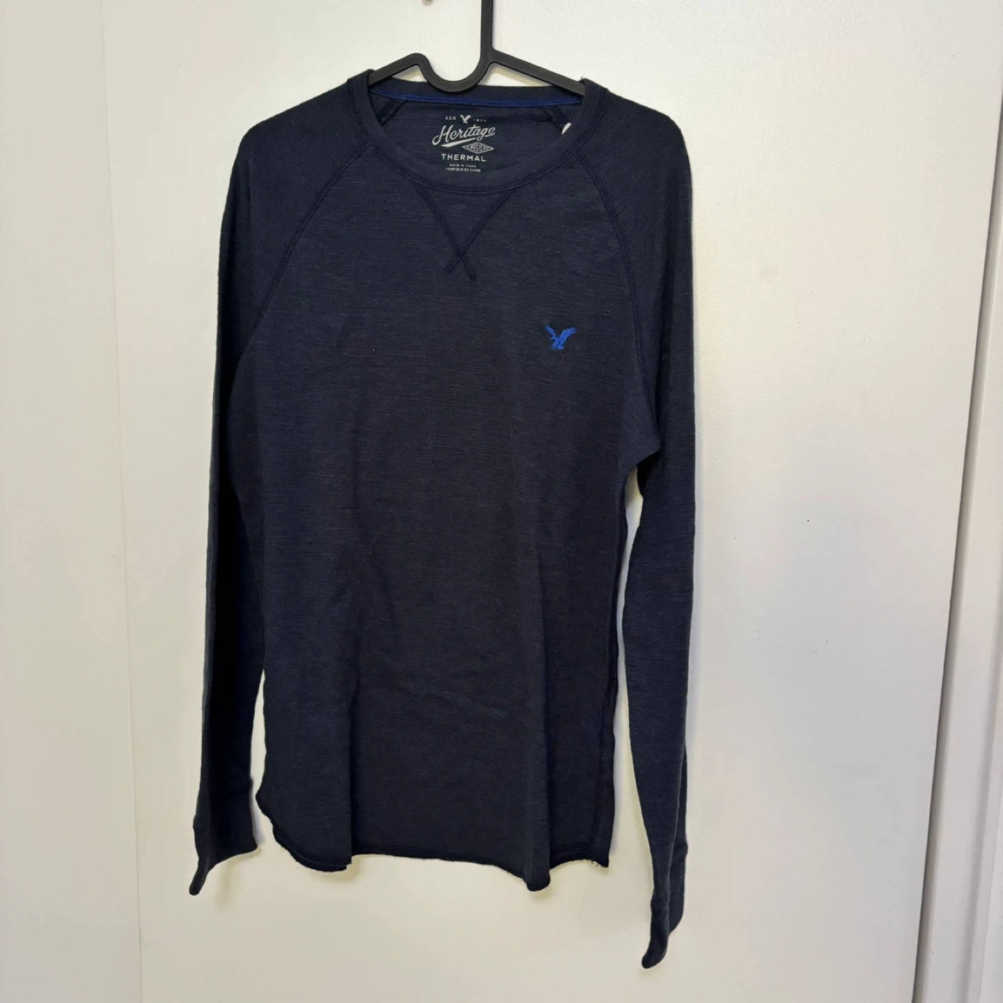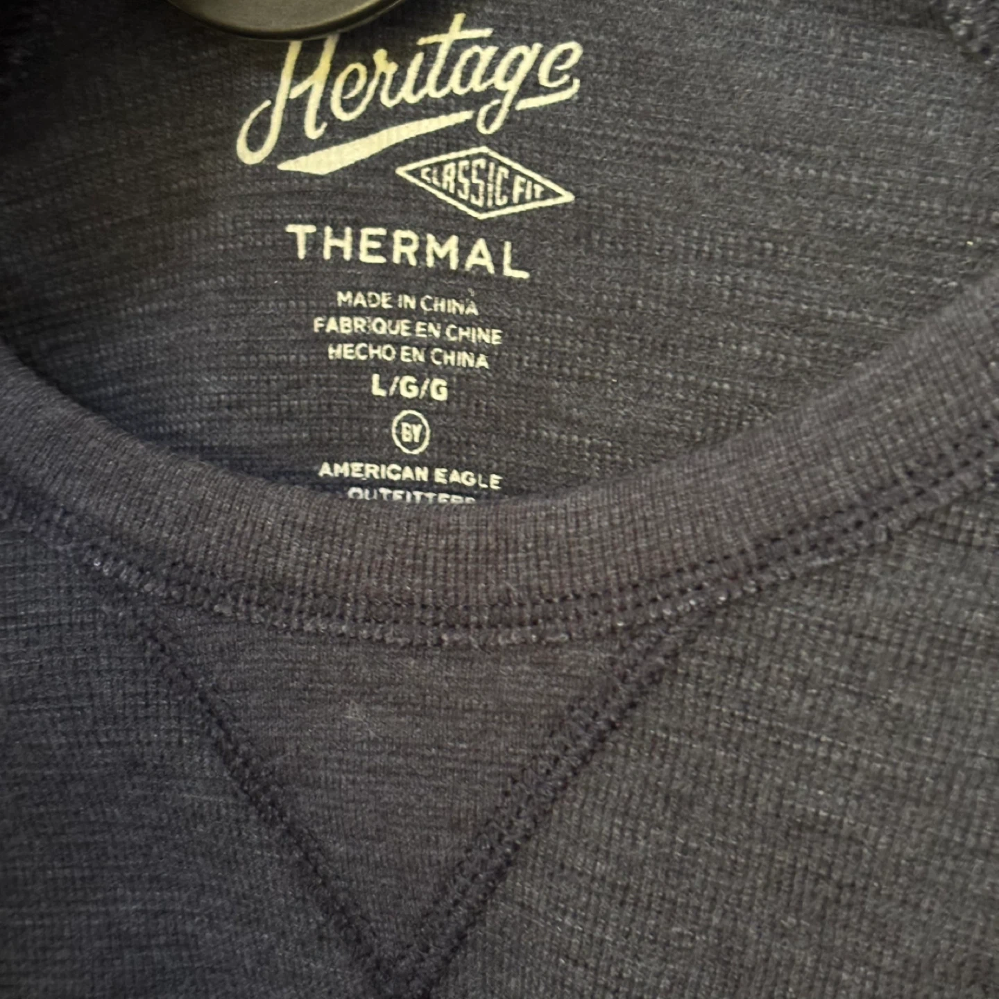 Selling a gently used American Eagle Heritage Thermal shirt in size Large. It's in great shape and perfect for layering during the cooler months. The shirt features the classic American Eagle logo and a comfortable fit. The material feels soft and cozy, making it a great addition to your wardrobe