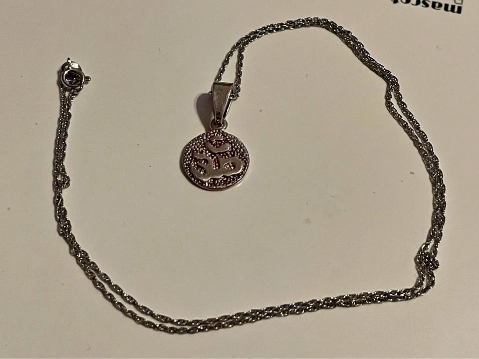 Buy & SellSilver Om Symbol Pendant NecklaceSilver Om Symbol Pendant Necklace$1This pendant features the Om (or Aum) symbol. It is silver and has a rose gold middle behind the symbol.WHERE TO MEETCheck LocationView MapSELLERverifiedExodusRossmere B650 reviews0 chats·0 favorites·7 viewsSEND CHAT TO SELLERHi Exodus! I’m interested in your listing.Hi Exodus! I’m interested in your listing.Get the Karrot app to chatSign In to chat