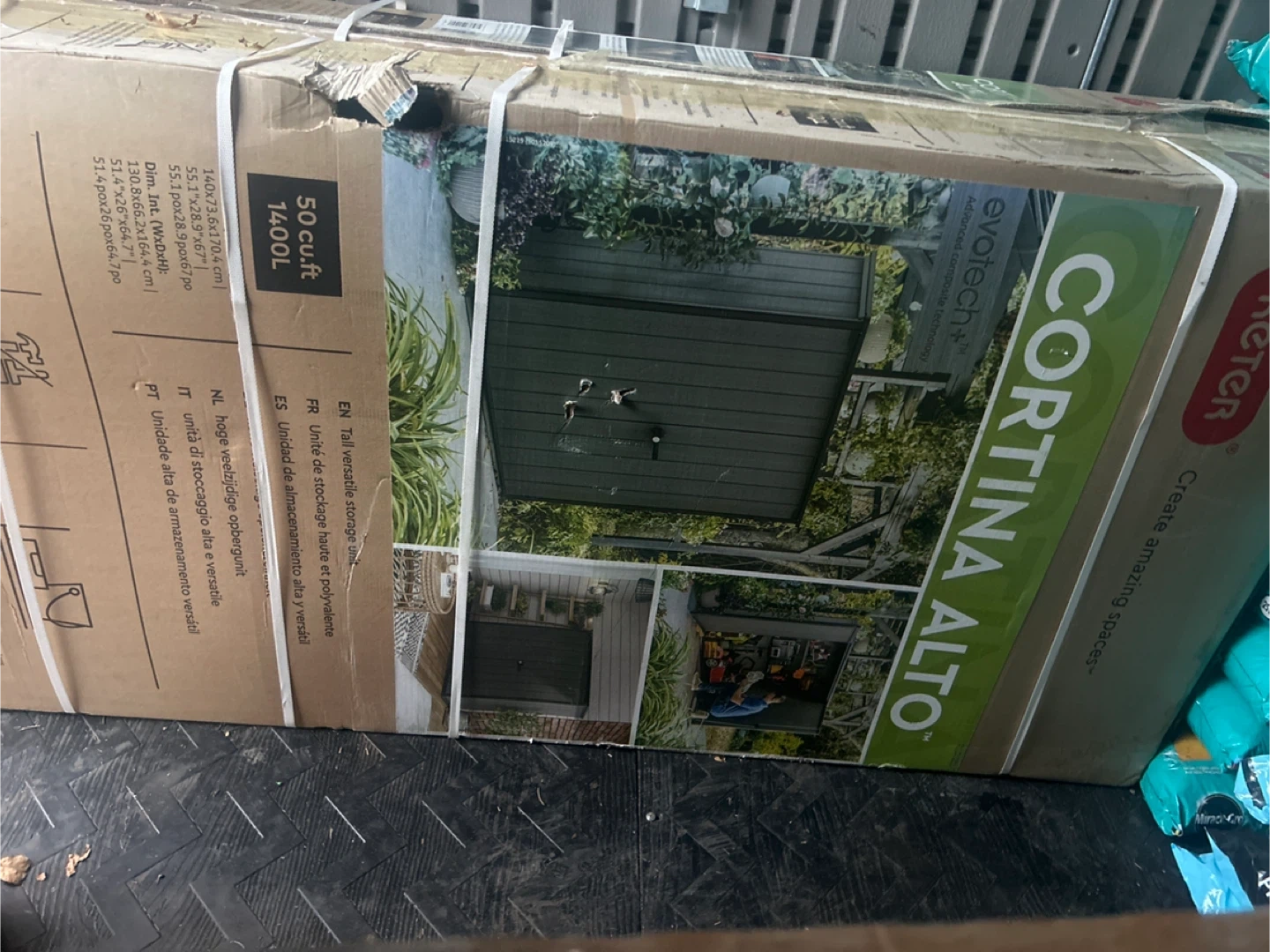 Selling a brand new Keter Cortina Alto 50 cu.ft. shed, still in its original box! This shed offers a tall, versatile storage solution.