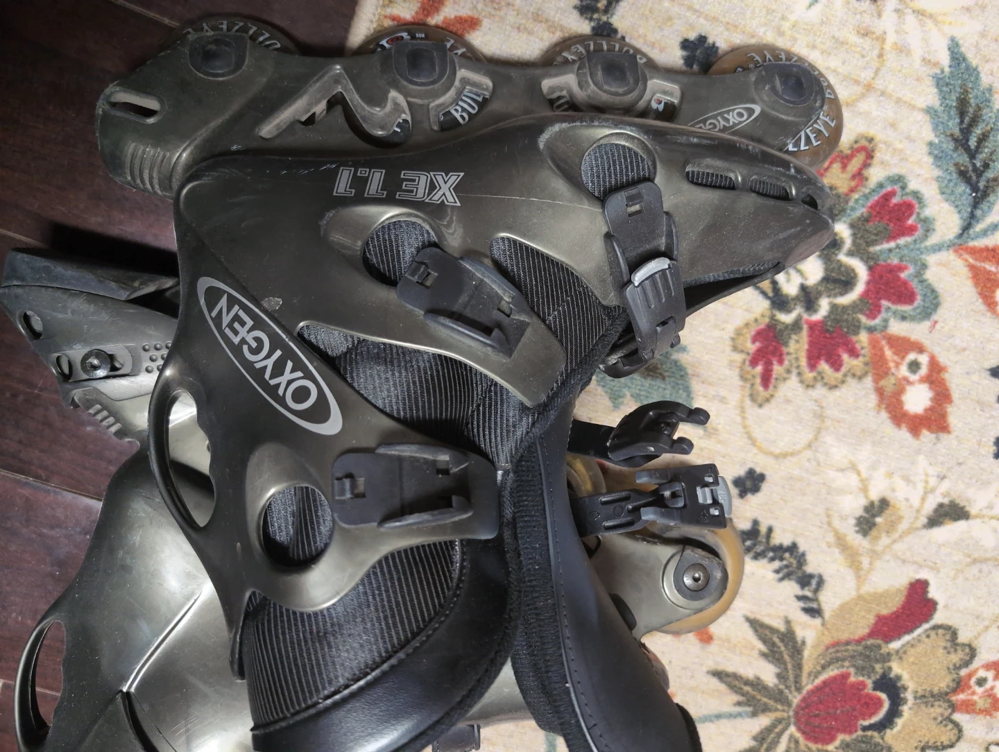 Oxygen XE 1.1 inline skates are a dark grey colour. They have adjustable buckles for a secure fit. These skates are good for recreational skating.
