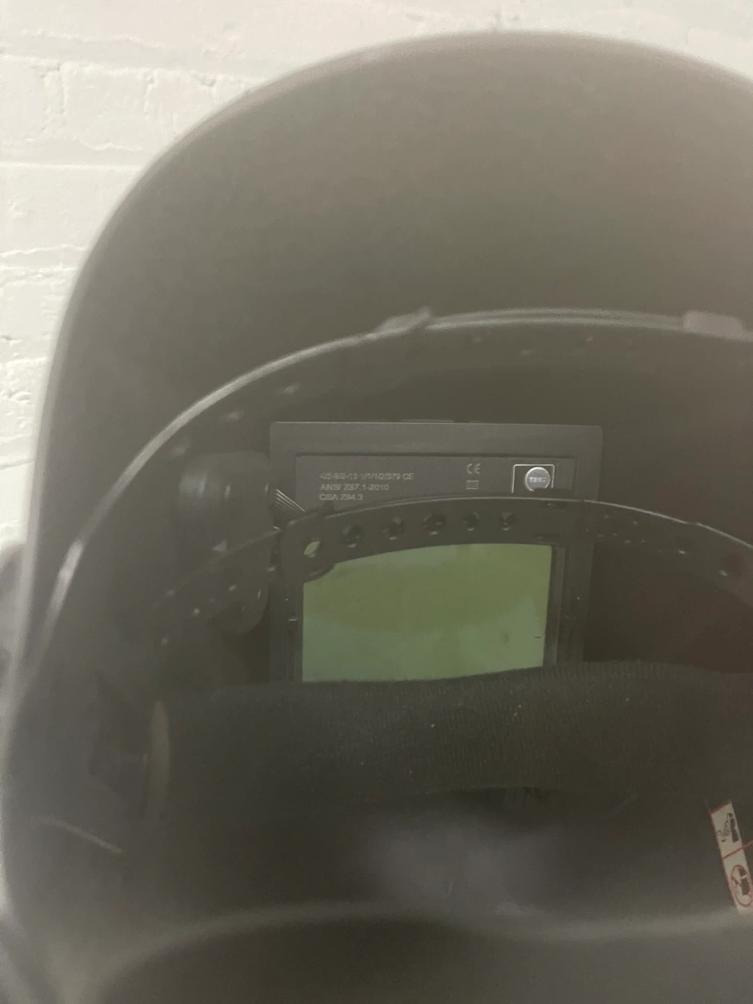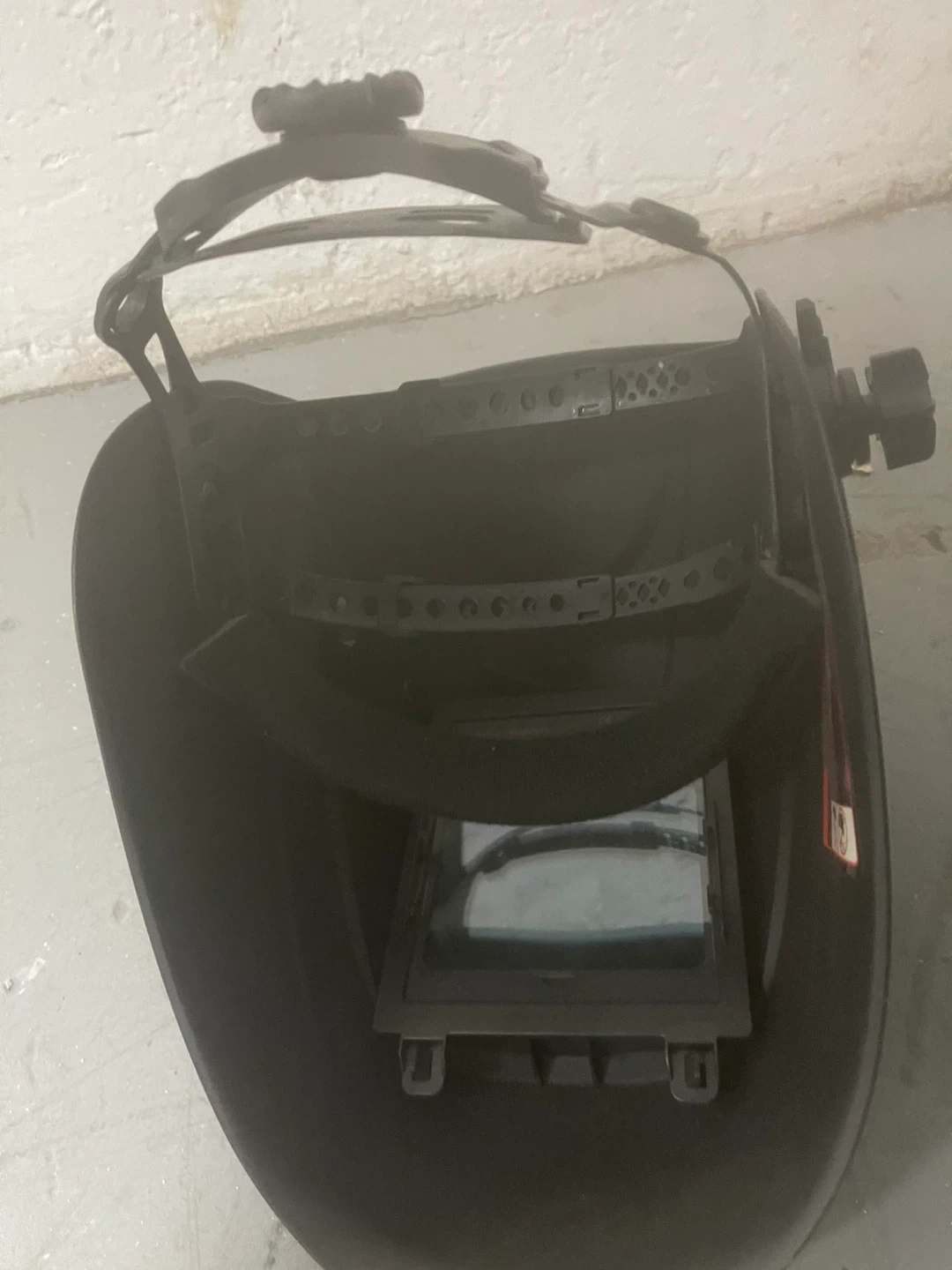 This is a black Safe Up WELDING HELMET PRO auto-darkening welding helmet. It features adjustable settings on the side and top. It's designed for welders needing eye protection.
