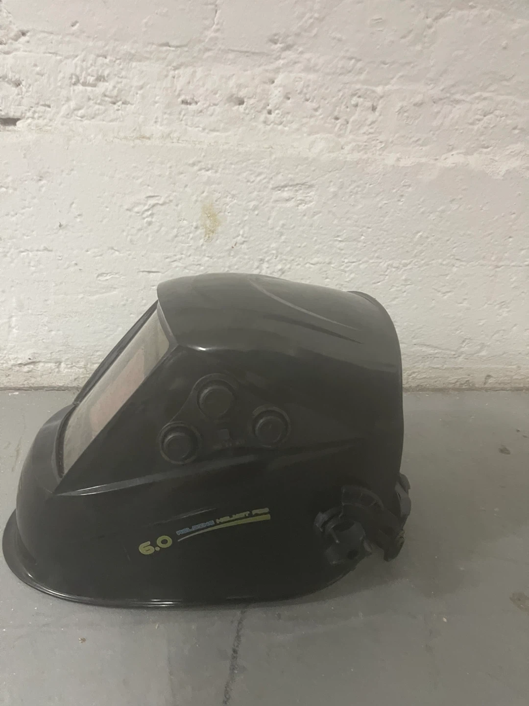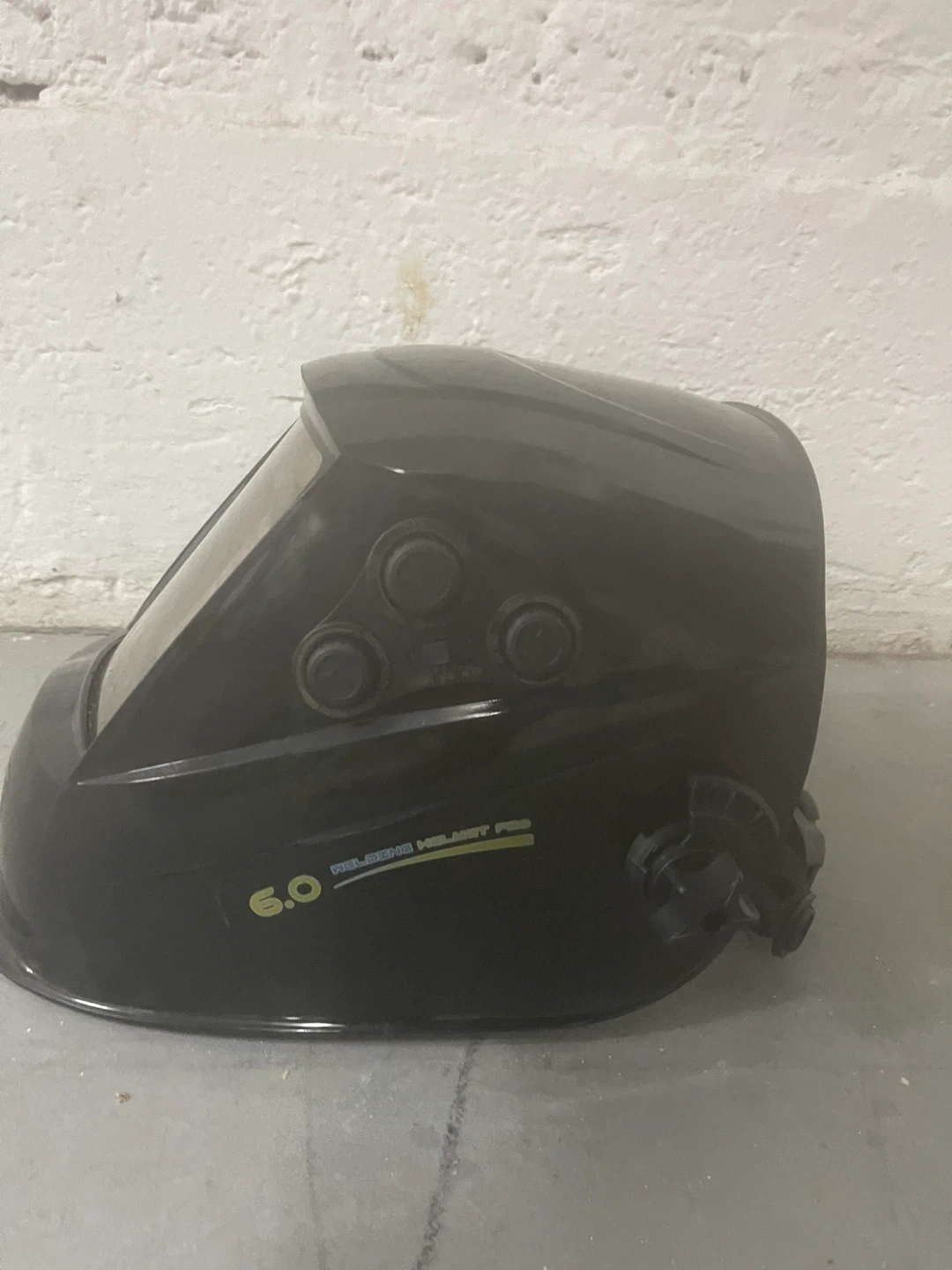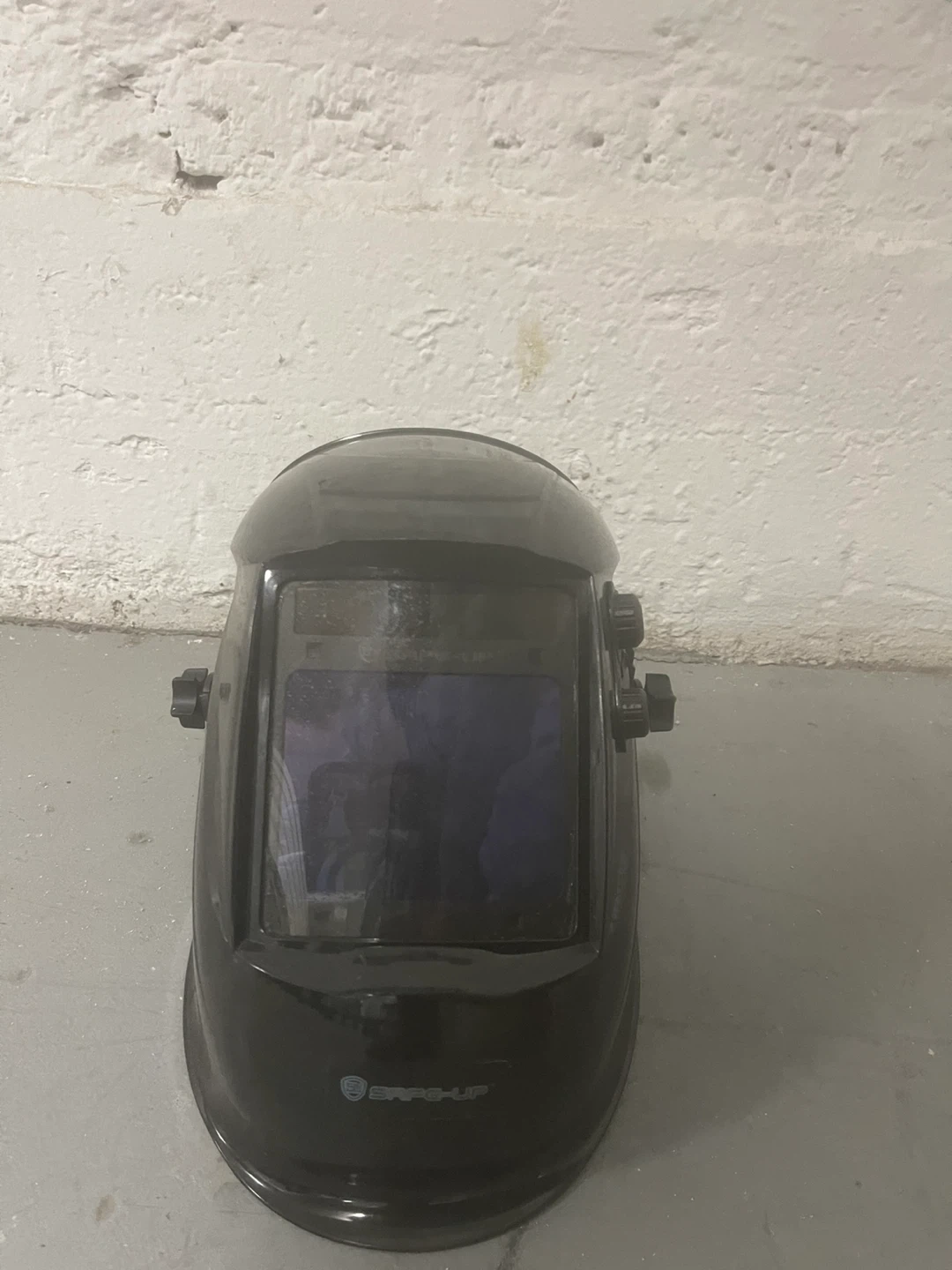 This is a black Safe Up WELDING HELMET PRO auto-darkening welding helmet. It features adjustable settings on the side and top. It's designed for welders needing eye protection.