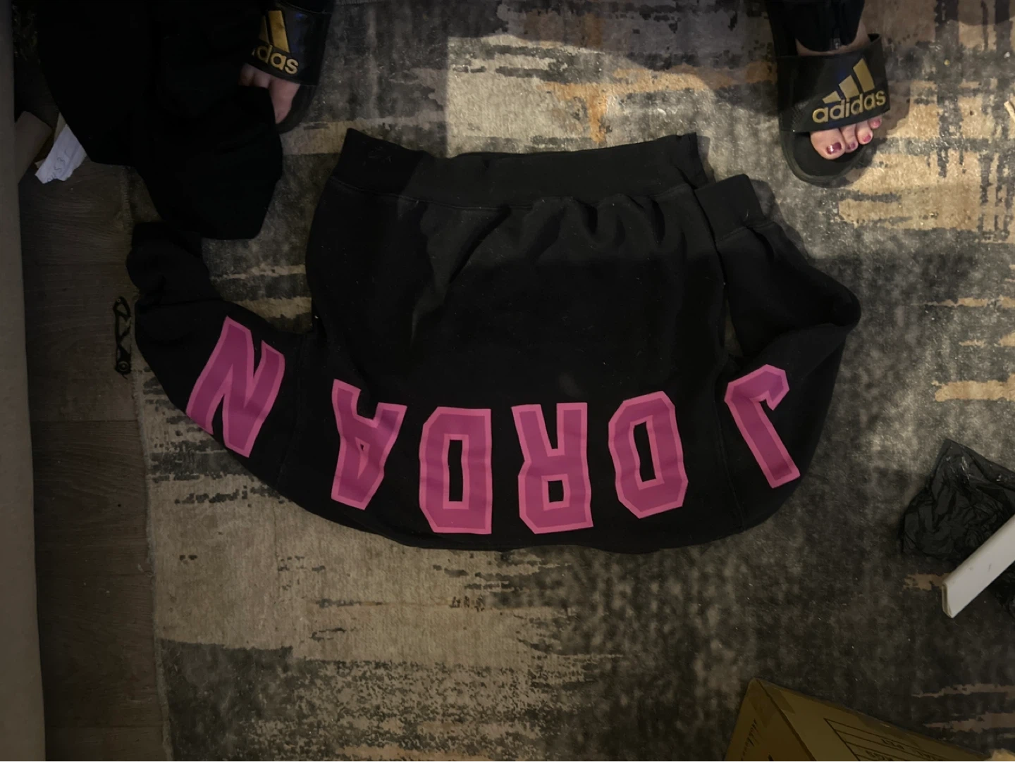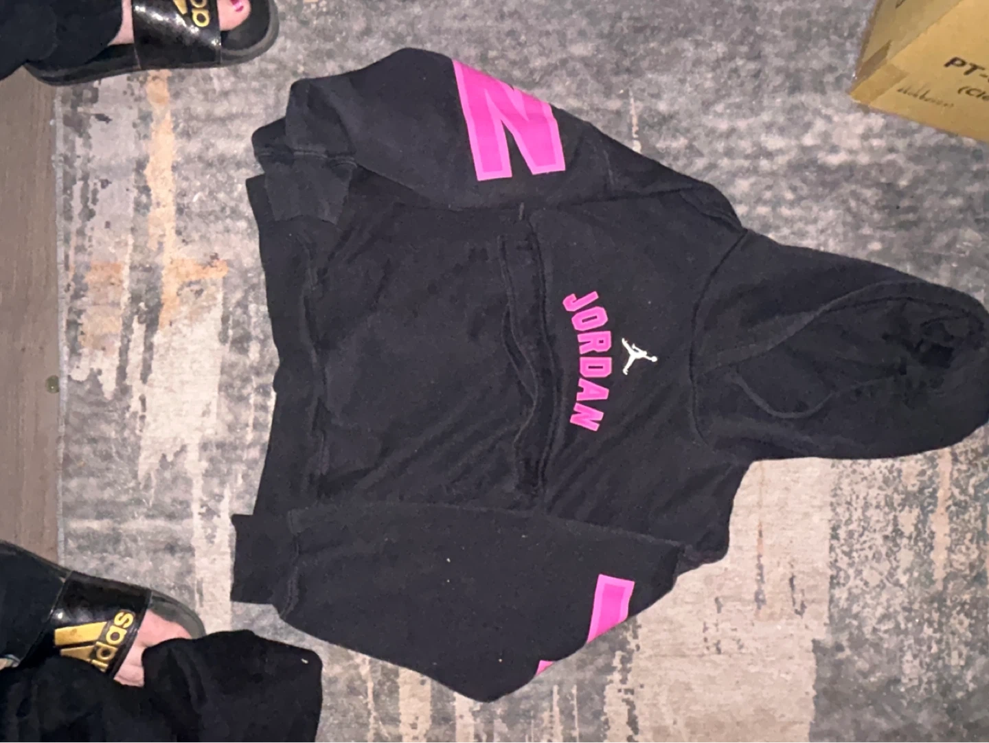 Buy & SellJordan Black Hoodie with Pink LetteringJordan Black Hoodie with Pink Lettering$52Black Jordan hoodie with "JORDAN" text in pink on the front and sleeves. It has a drawstring hood and a kangaroo pocket. Cotton blend material.WHERE TO MEETCity CenterView MapSELLERverifiedRandalynCity Center813 reviews0 chats·0 favorites·6 viewsSEND CHAT TO SELLERHi Randalyn! I’m interested in your listing.Hi Randalyn! I’m interested in your listing.Get the Karrot app to chatSign In to chat