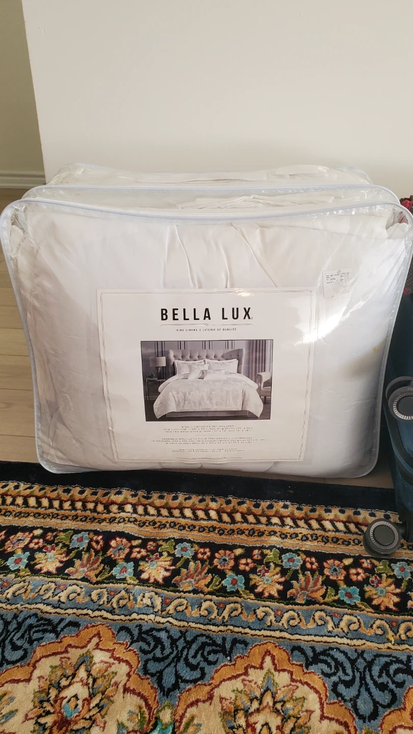 This Bella Lux king comforter set includes one 90" x 92" comforter and two 20" x 26" standard shams. It's made from 100% polyester. This bedding set is great for updating your bedroom decor!