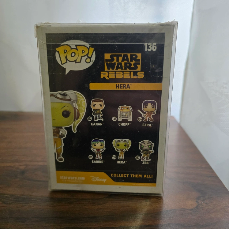 New Funko Pop! Vinyl figure. Number 136 in the Star Wars Rebels series. Hera Syndulla collectible. In original packaging. Some ware as I believe it was kept in a garage.