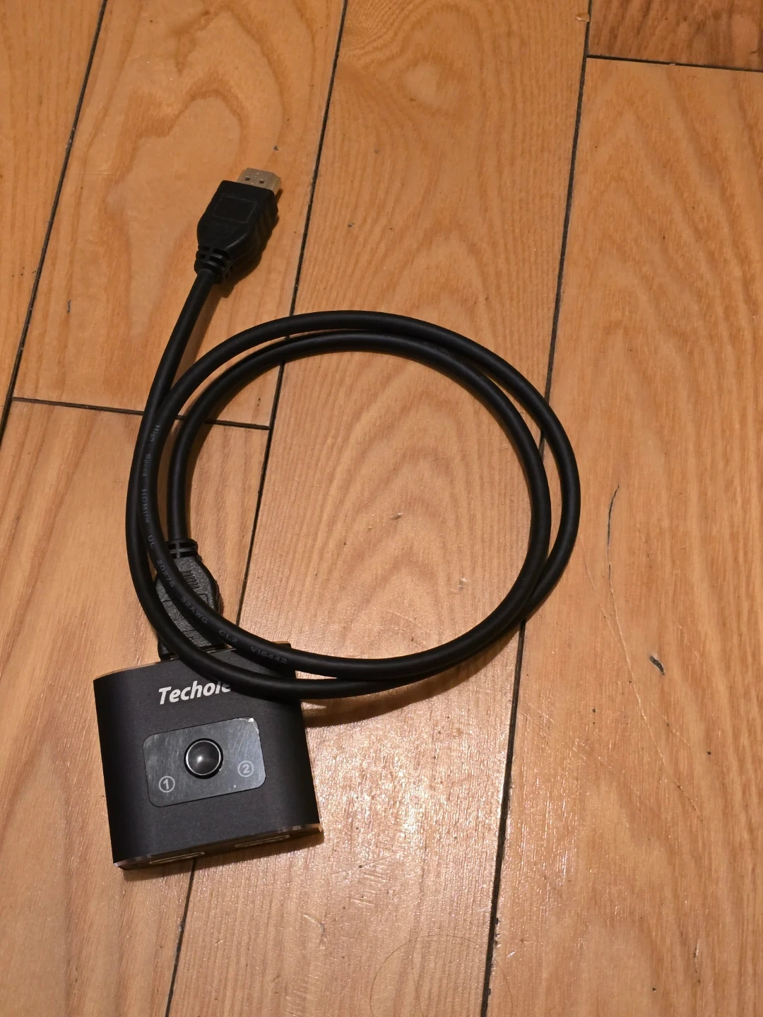 Great working condition- good to connect two devices to a monitor. This is a Techole 2-port HDMI switch. It allows you to connect two HDMI sources to one display. Switching between inputs is done with the button on top.