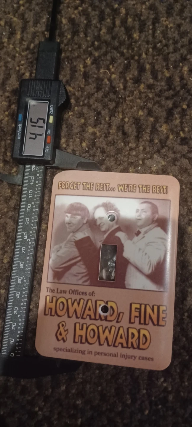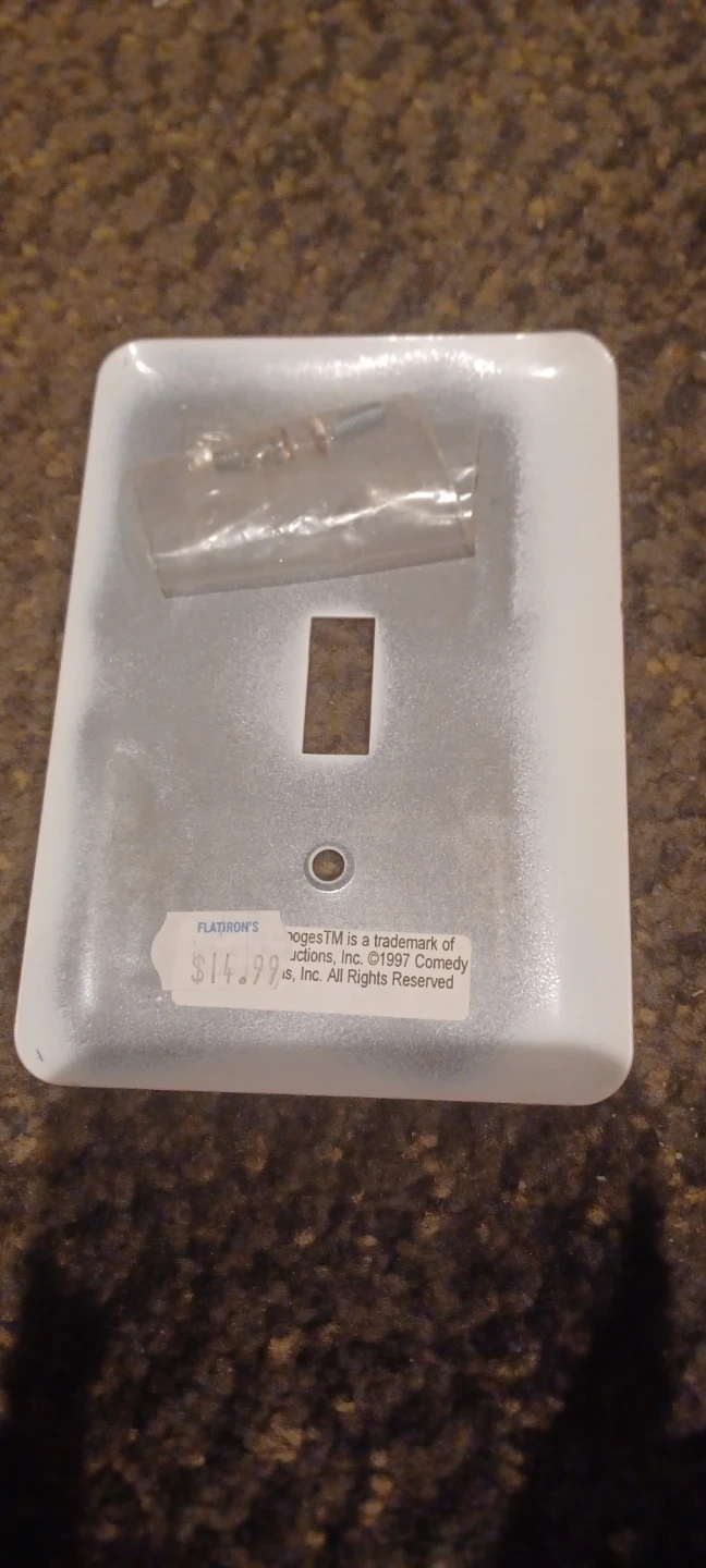 Brighten up your room with this novelty The Three Stooges light switch cover! This used cover features the iconic comedy trio, Howard, Fine, and Howard, and is in good condition. It's a fun collectible for any fan. Approximate dimensions are 2.65 inches x 4.15 inches.