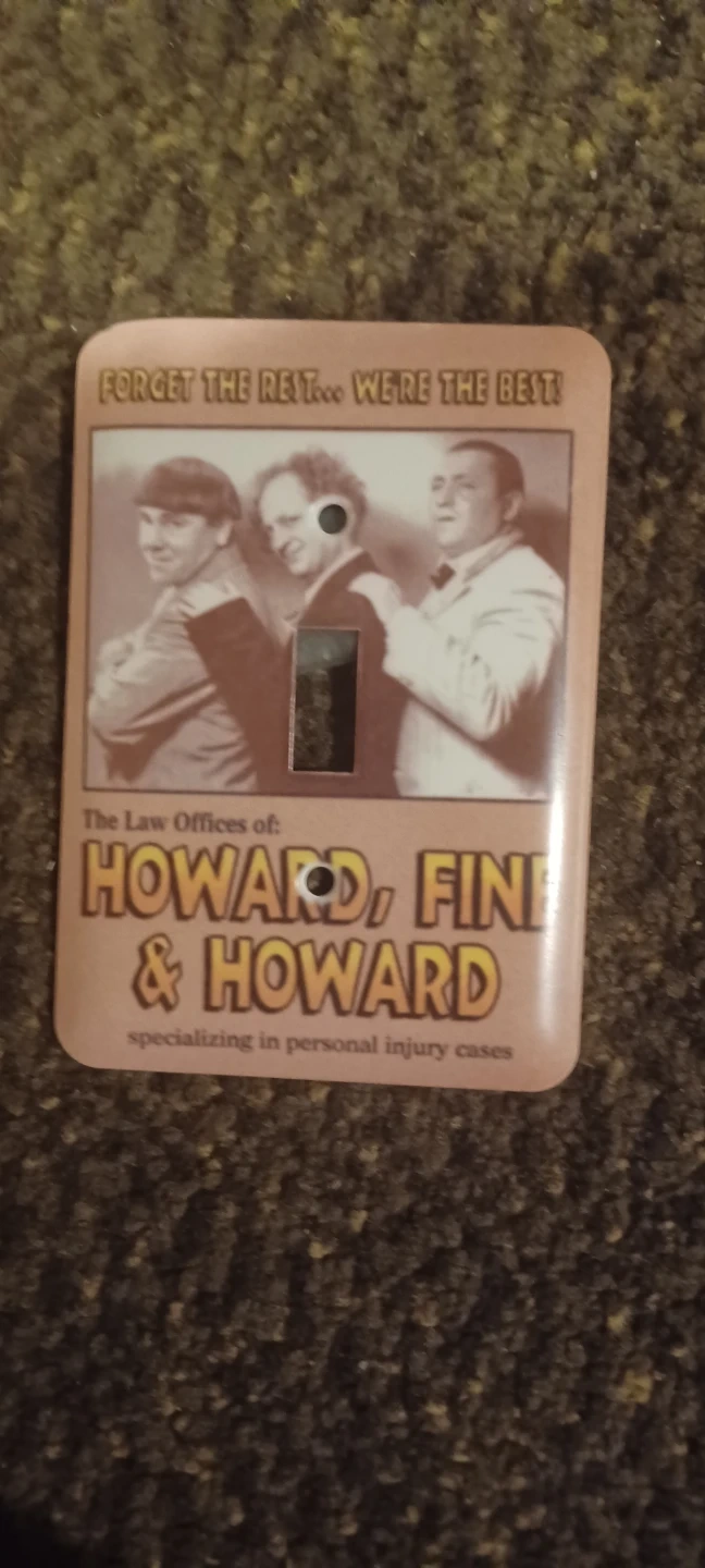 Brighten up your room with this novelty The Three Stooges light switch cover! This used cover features the iconic comedy trio, Howard, Fine, and Howard, and is in good condition. It's a fun collectible for any fan. Approximate dimensions are 2.65 inches x 4.15 inches.