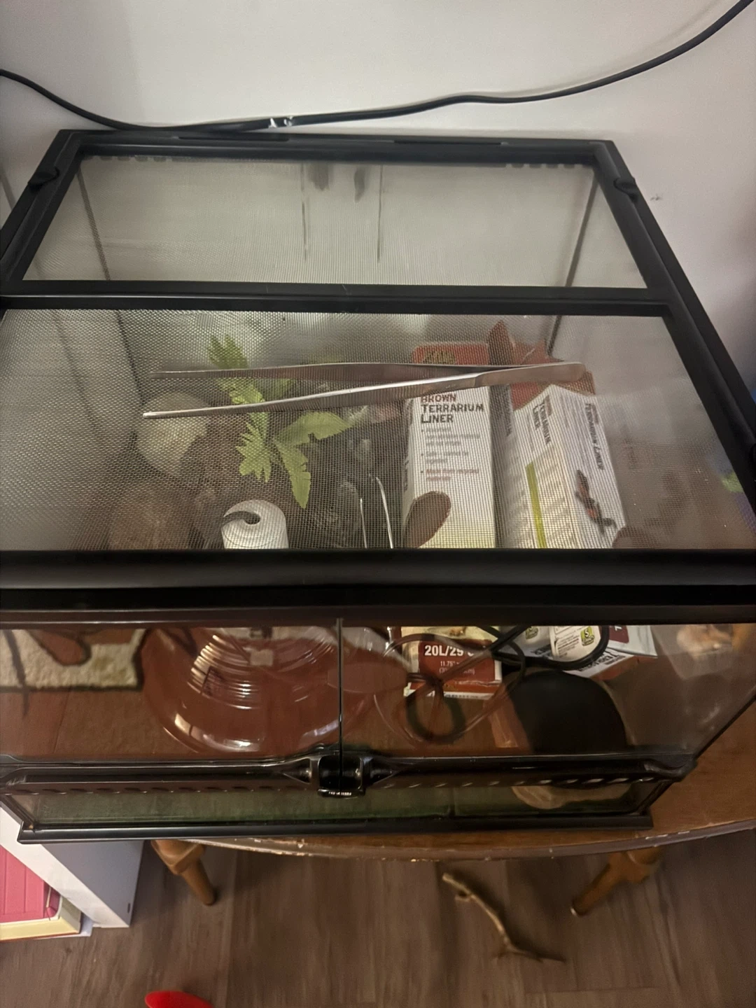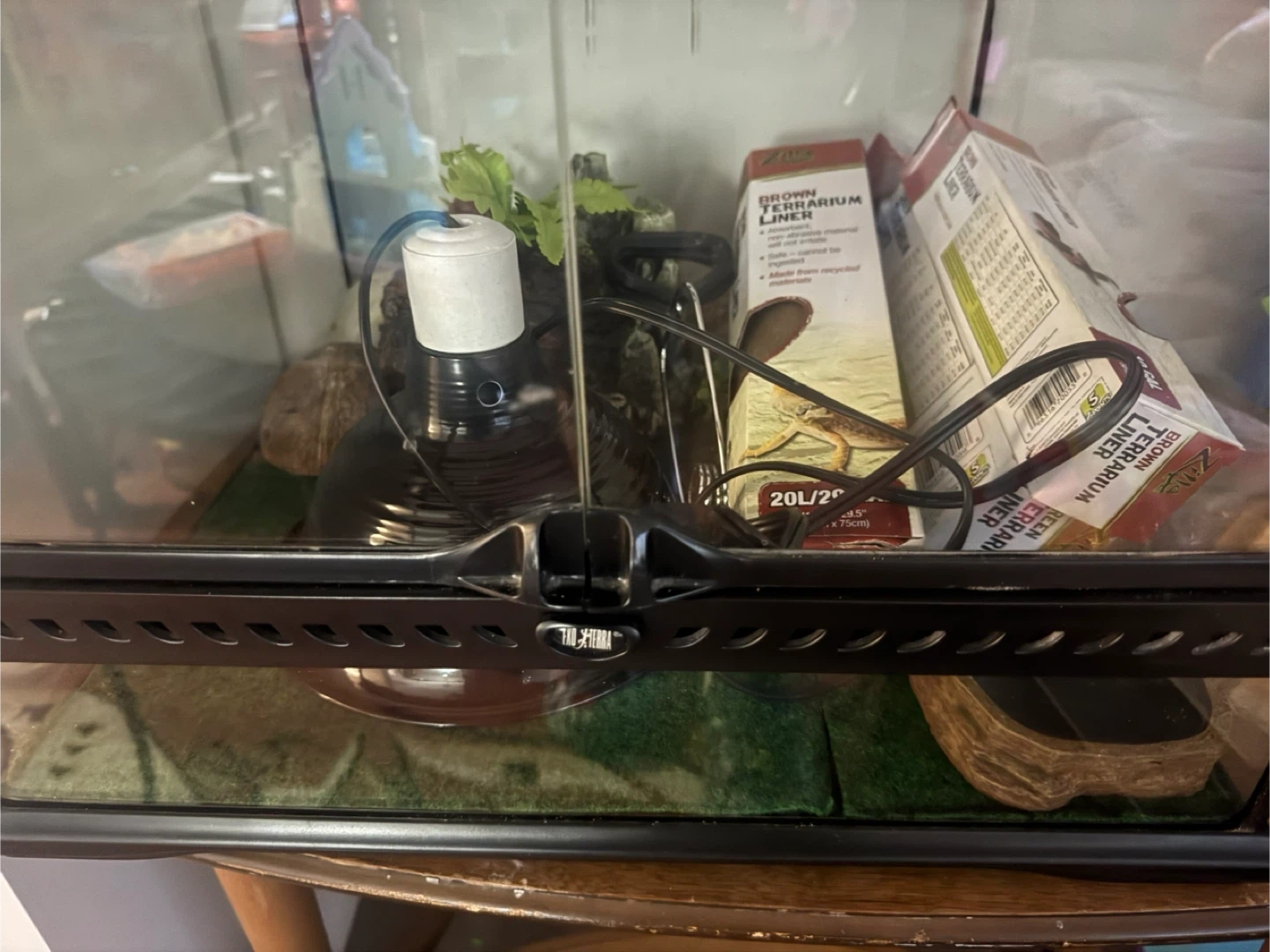 This is a Zilla terrarium, comes with a brown terrarium liner. It's 20L/25 gal size. Includes accessories for setup.