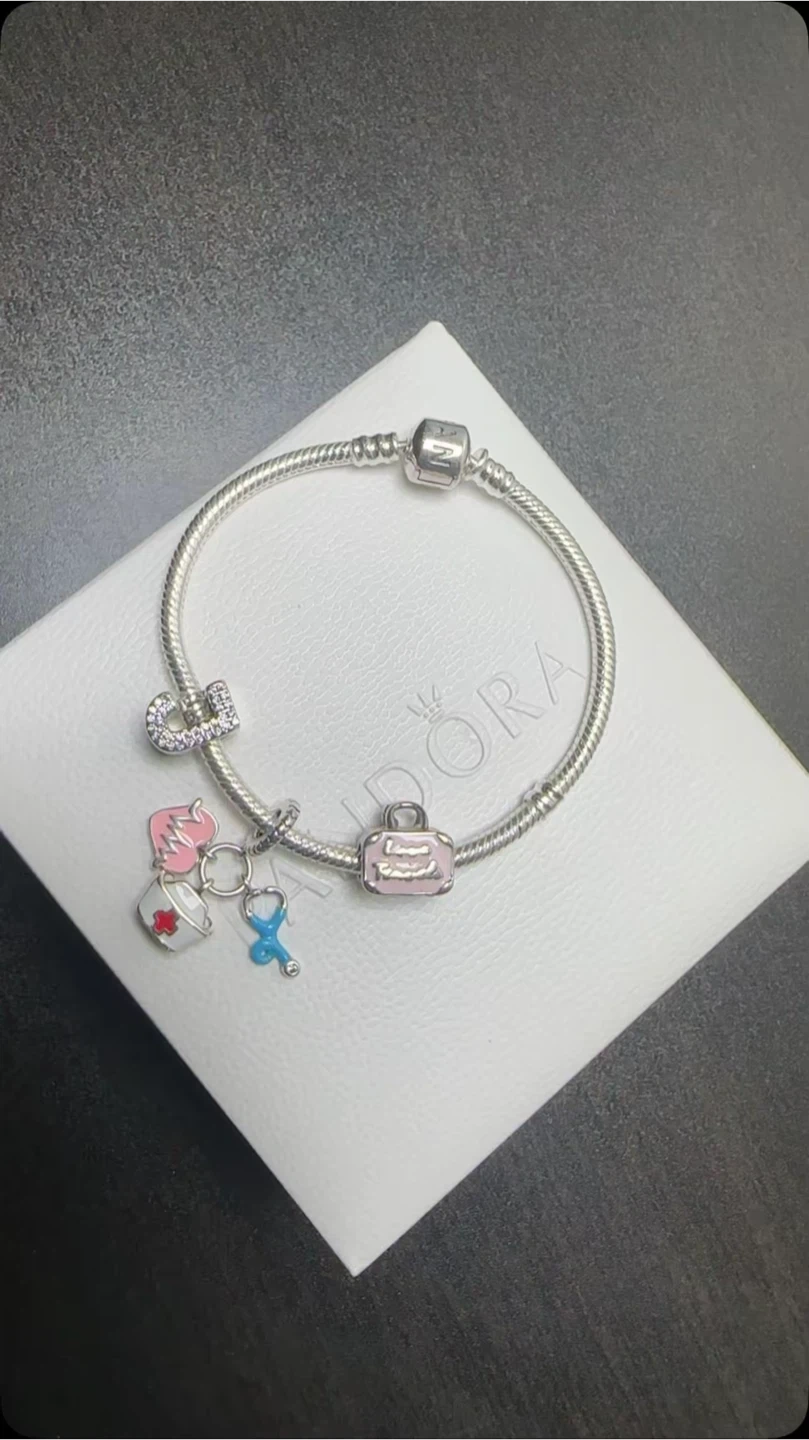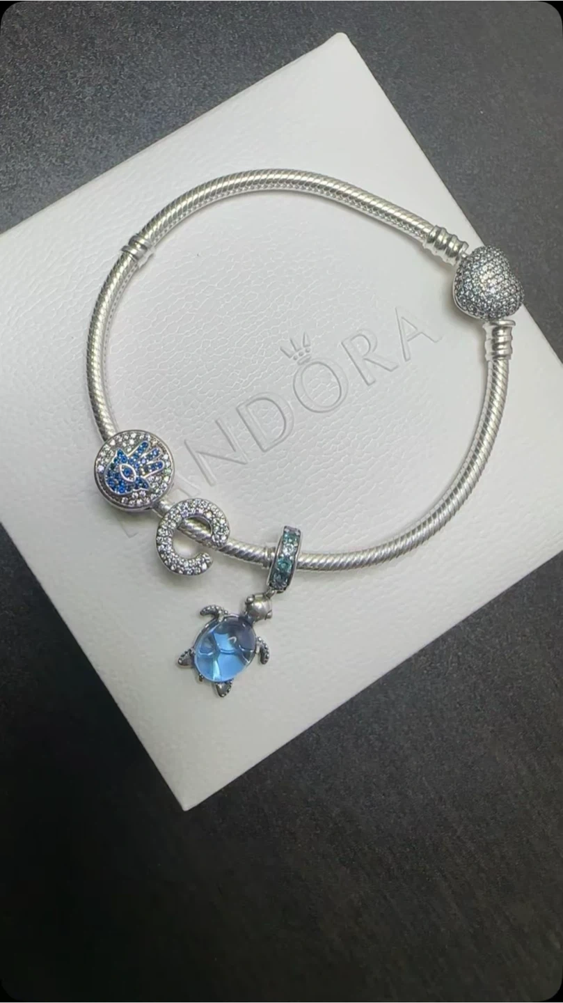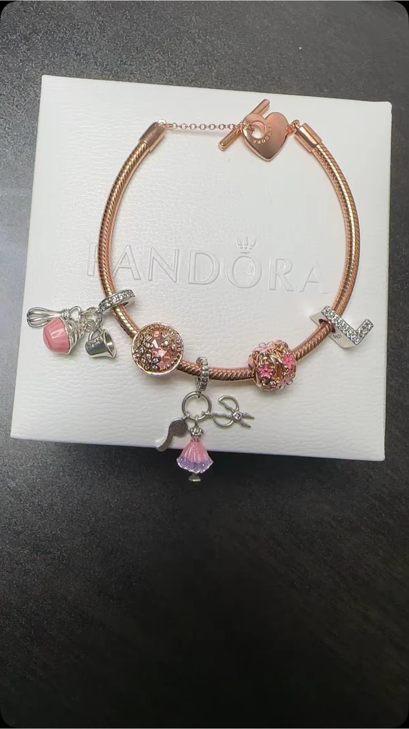 Selling a lovely Pandora charm bracelet! It's in great shape and comes with a variety of cute charms. Perfect for adding to your collection or starting a new one. The bracelet and charms are all silver. Comes with the original box!