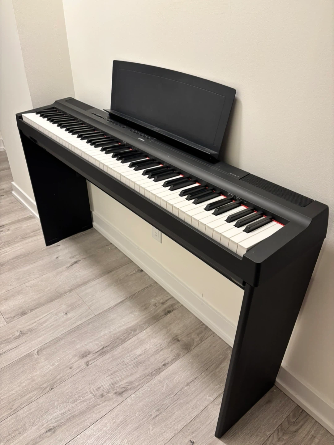 Brand new barely used Yamaha digital piano P-125 in black. It's a great starter keyboard. Includes music rest and a stand.