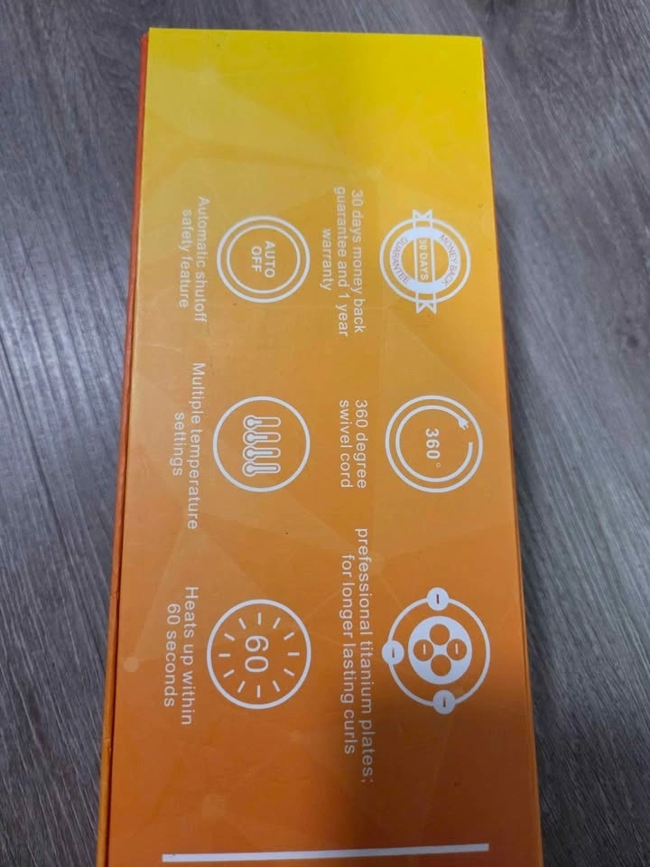 New ANGENIL professional flat iron, great for straightening or curling. Features titanium plates for long-lasting styles. Includes heat-resistant glove, hair clips, and mat. Multiple temperature settings, automatic shutoff for safety. Heats up in 60 seconds with a swivel cord for easy styling.