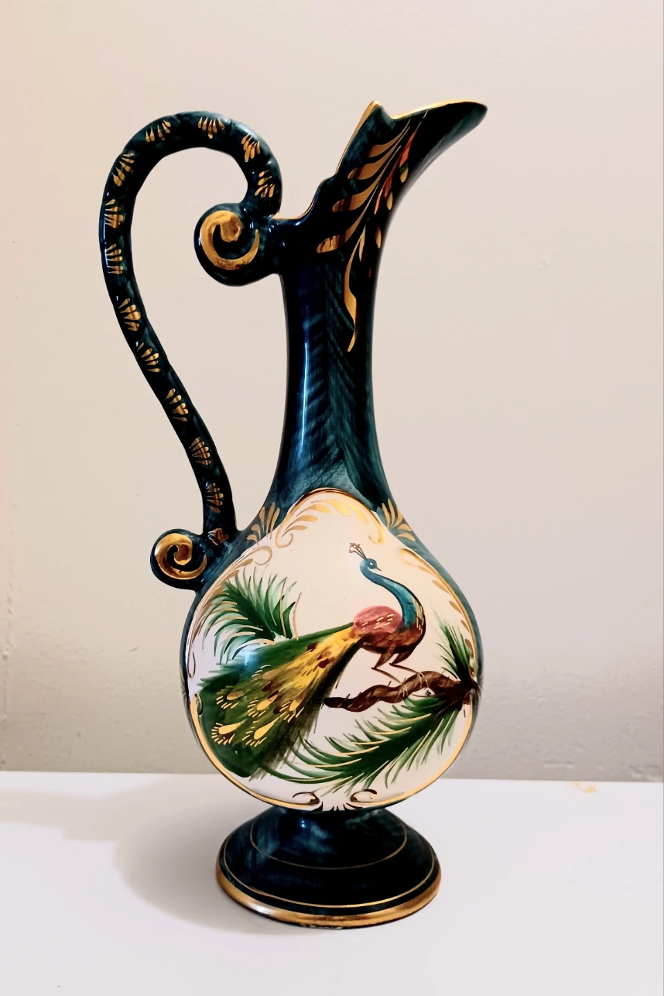Vintage, Very Rare, Collectible Household Hand Painted H.Bequet Quaregnon Rare, Stunning Peacock Vase # 272 Golden Trimmed