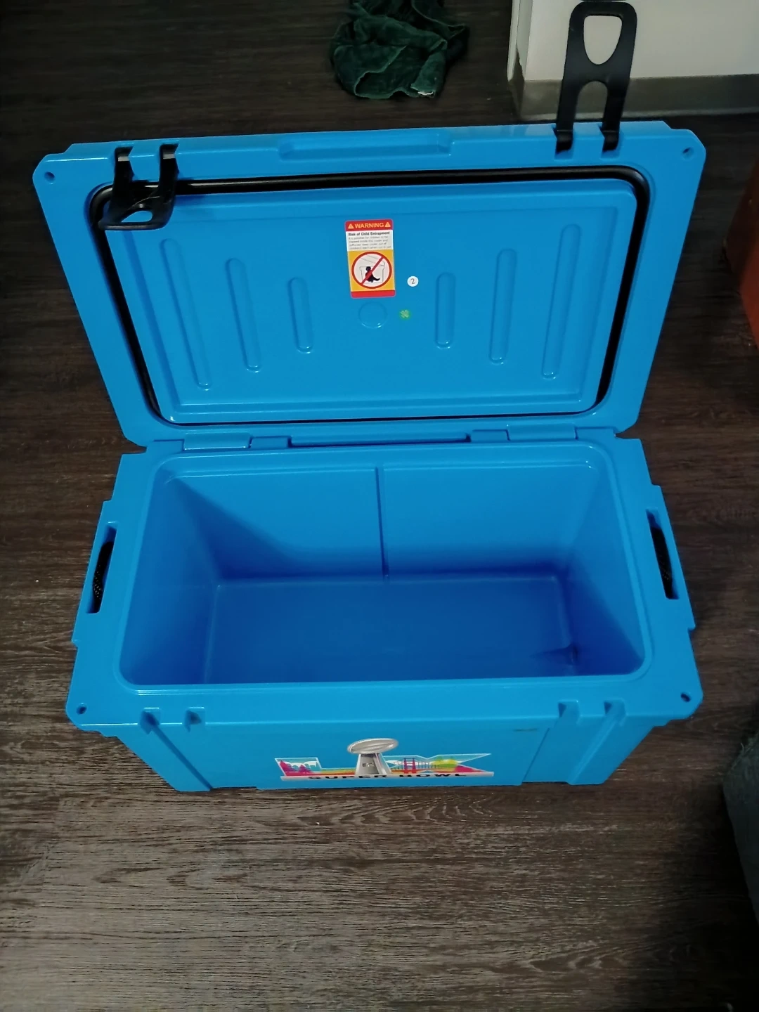 Can hold 54 quarts without the supee Bowl logo its worth asking
