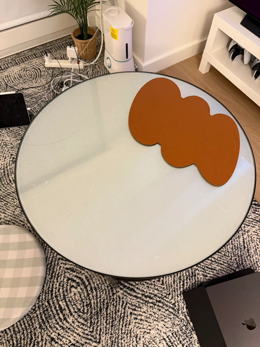 Selling a round glass coffee table.