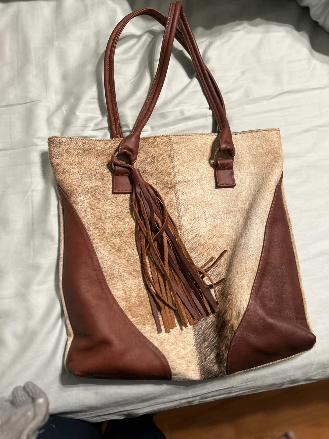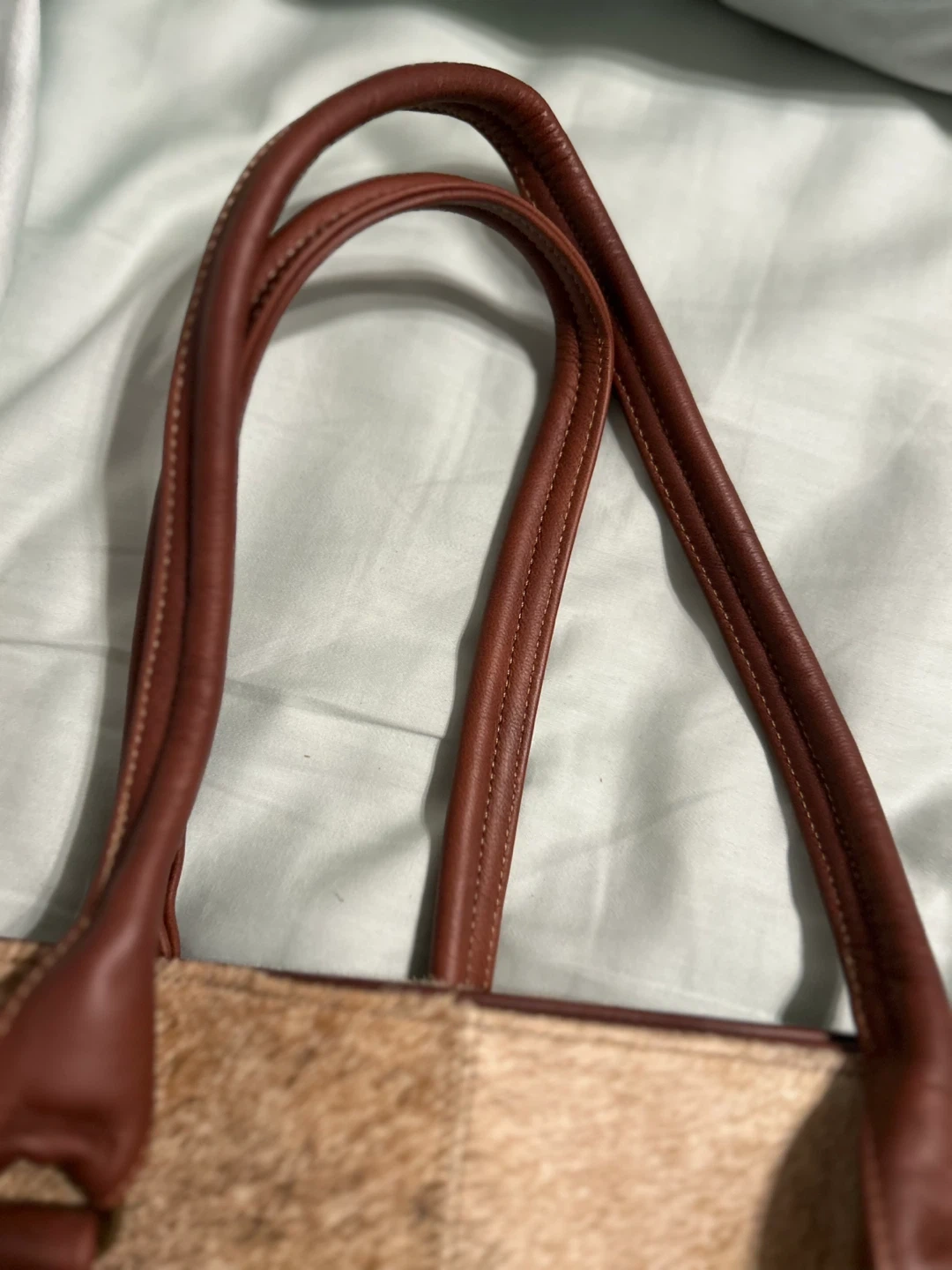 Selling a Hidesign tote bag made of genuine leather. It features a unique design with brown leather handles and a spacious interior. Perfect for everyday use!