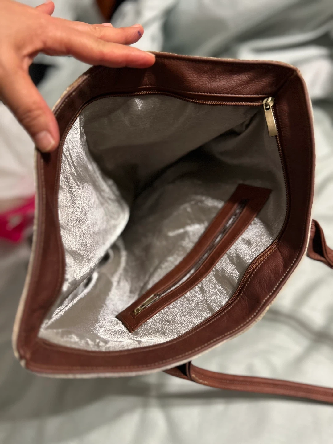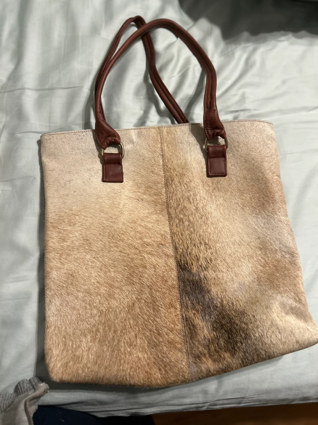 Selling a Hidesign tote bag made of genuine leather. It features a unique design with brown leather handles and a spacious interior. Perfect for everyday use!