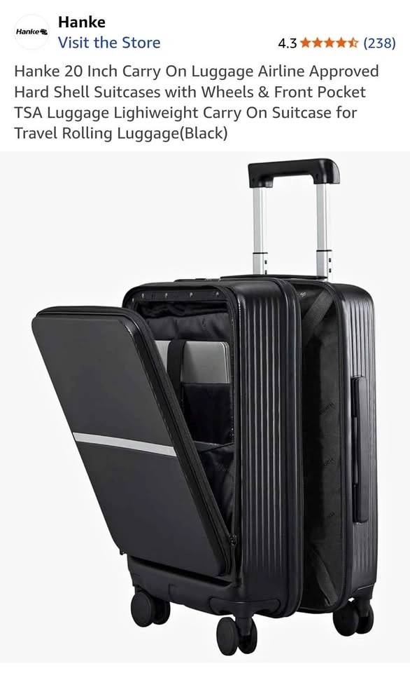 Brand new Hanke 20-inch carry-on luggage in black. Retails for $130 + tax on Amazon.