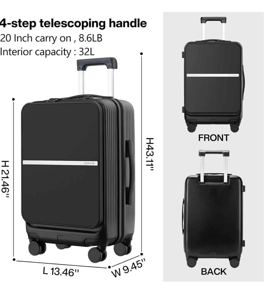Brand new Hanke 20-inch carry-on luggage in black. Retails for $130 + tax on Amazon.