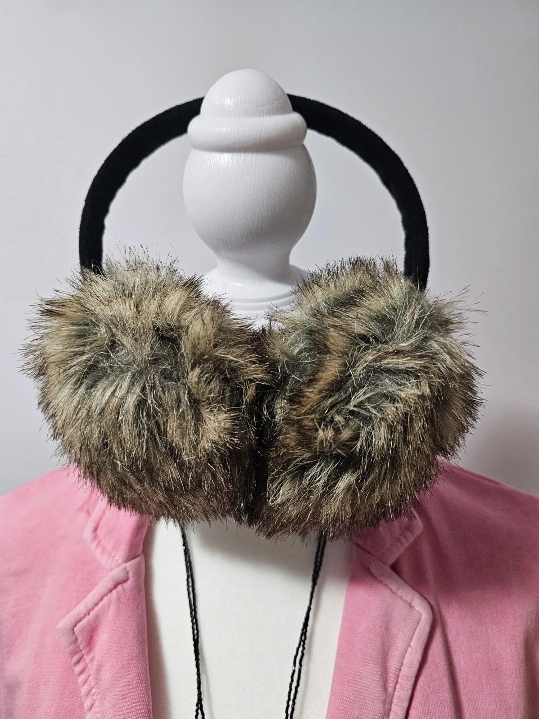 Warm and fuzzy earmuffs for chilly days. These earmuffs are made with a soft faux fur material and a black adjustable band. They offer cozy ear coverage to keep you warm. Perfect for winter strolls!