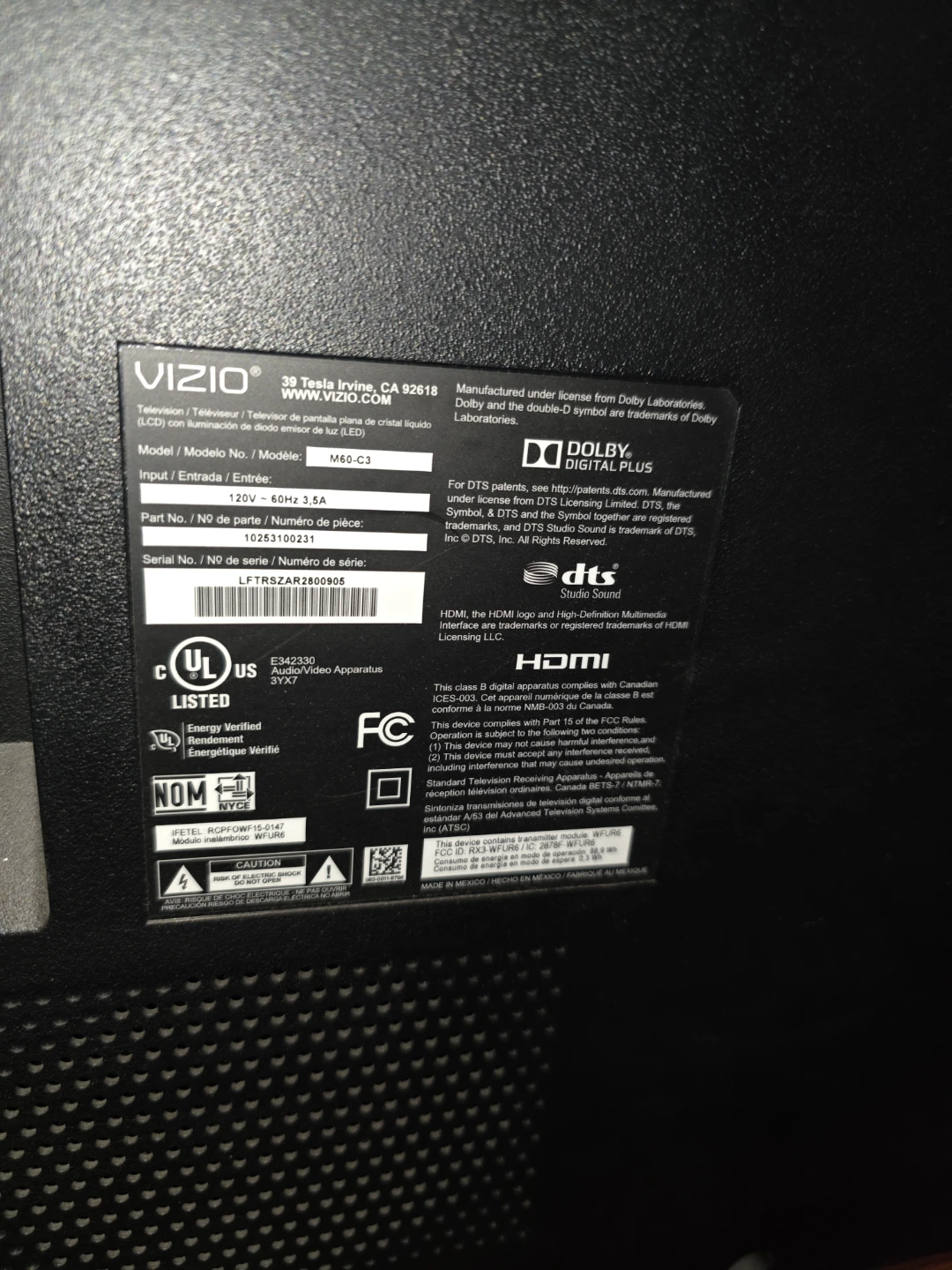 This VIZIO Smart LED TV offers a 60-inch display with a resolution of 3840 x 2160. It supports HDMI and is an Energy Verified device. The model is M60-C3. Remote has full keyboard to make easier to search on YouTube.