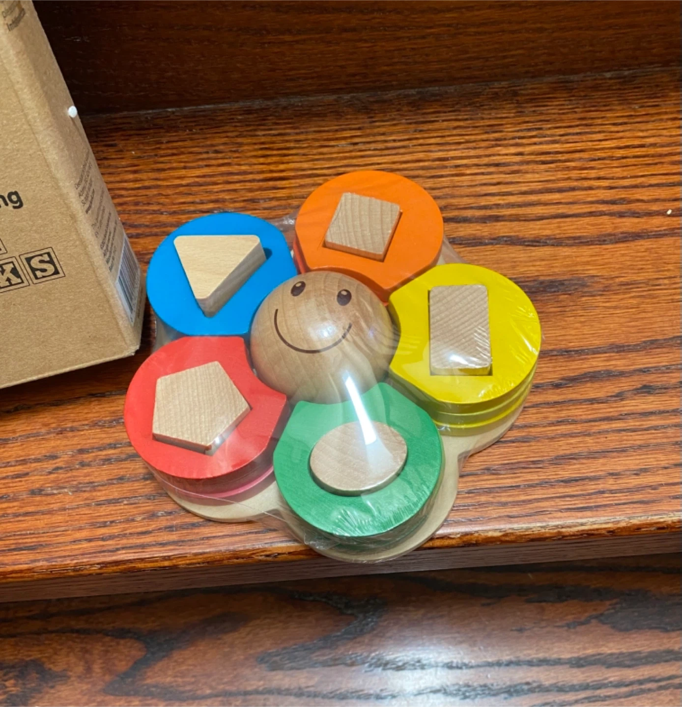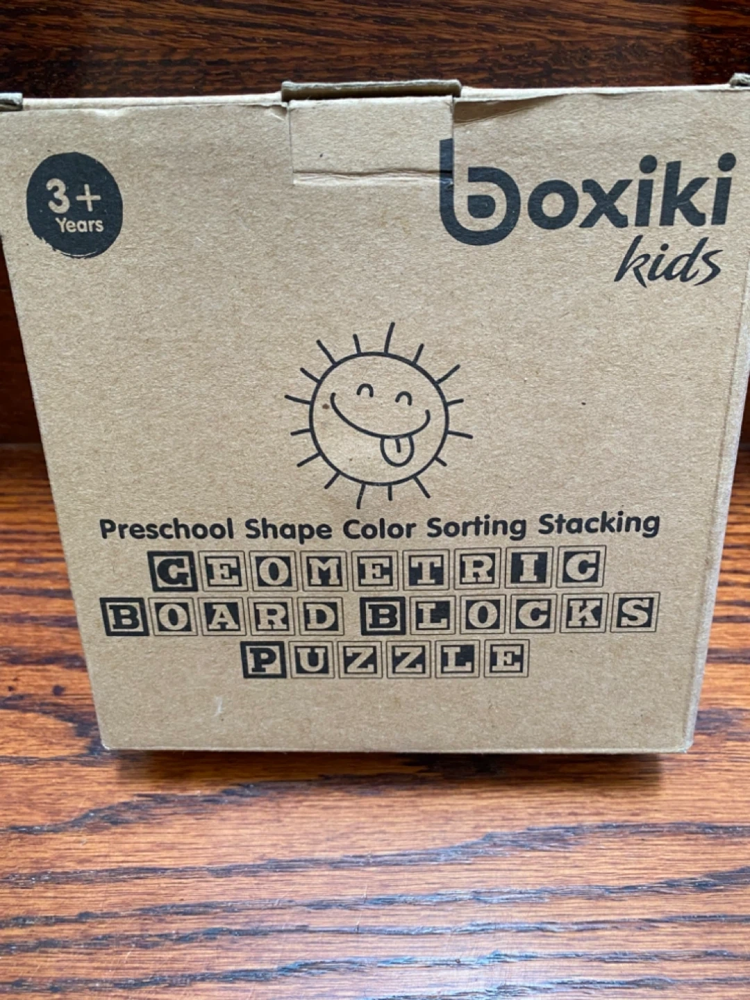 Boxiki Kids Preschool Shape Color Sorting Stacking Geometric Board Puzzle. Wooden toy with colorful shapes. Recommended for ages 3+ years.