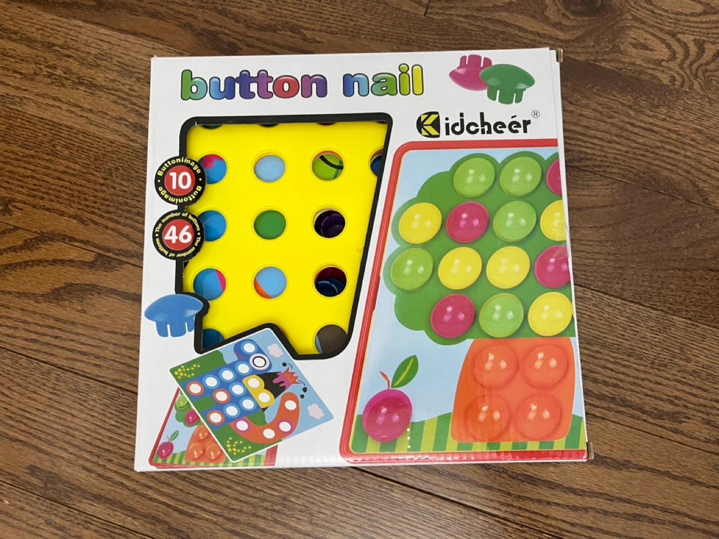 Button nail art toy. Includes colourful buttons and 10 boards. Fun activity for kids. Great for creativity and fine motor skills.