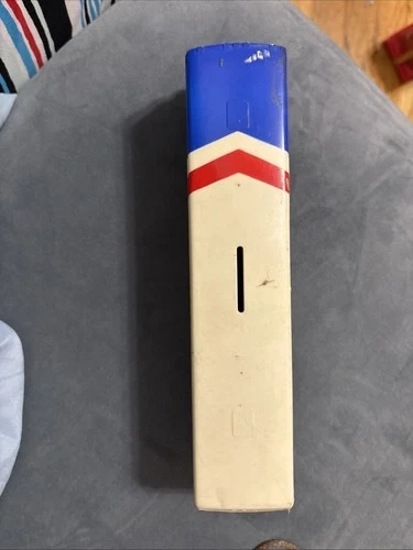 This is a vintage Greyhound diecast toy bus that also functions as a piggybank. It features a detailed bus design and is great for kids to save their change. It has some marks on it.