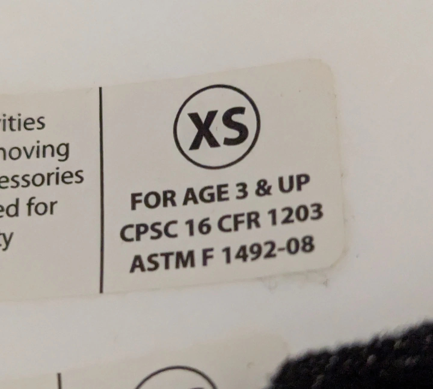 This Olaf helmet is sized XS and is suitable for ages 3 and up. It's designed with a fun character motif and features ventilation holes for comfort. Safety standards CPSC 16 CFR 1203 and ASTM F 1492-08 are met.