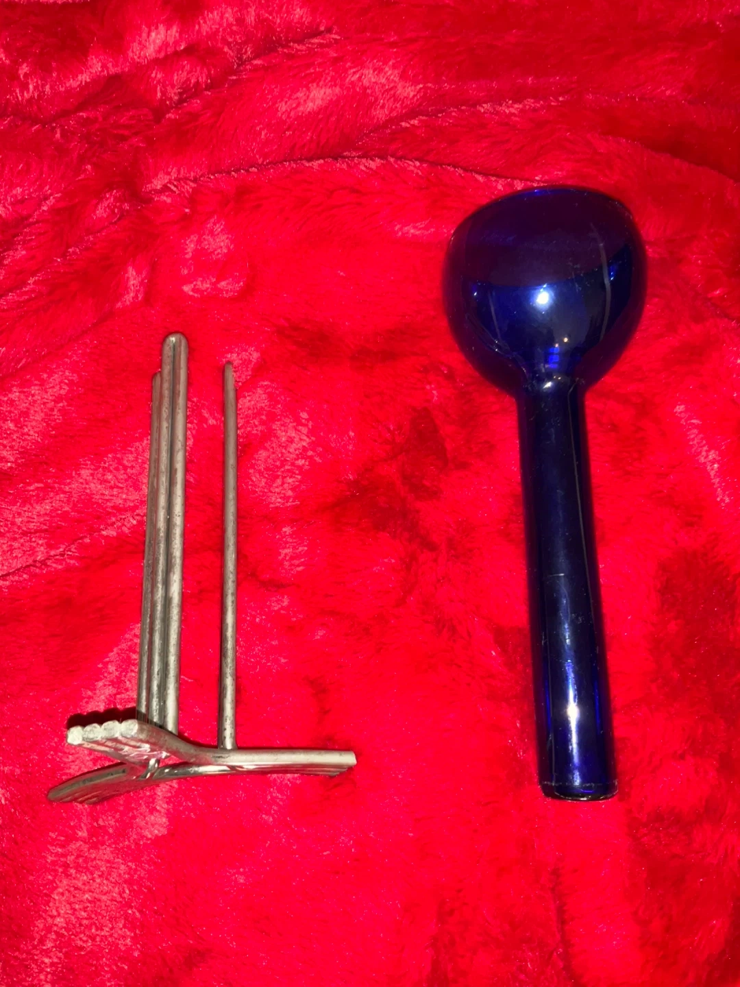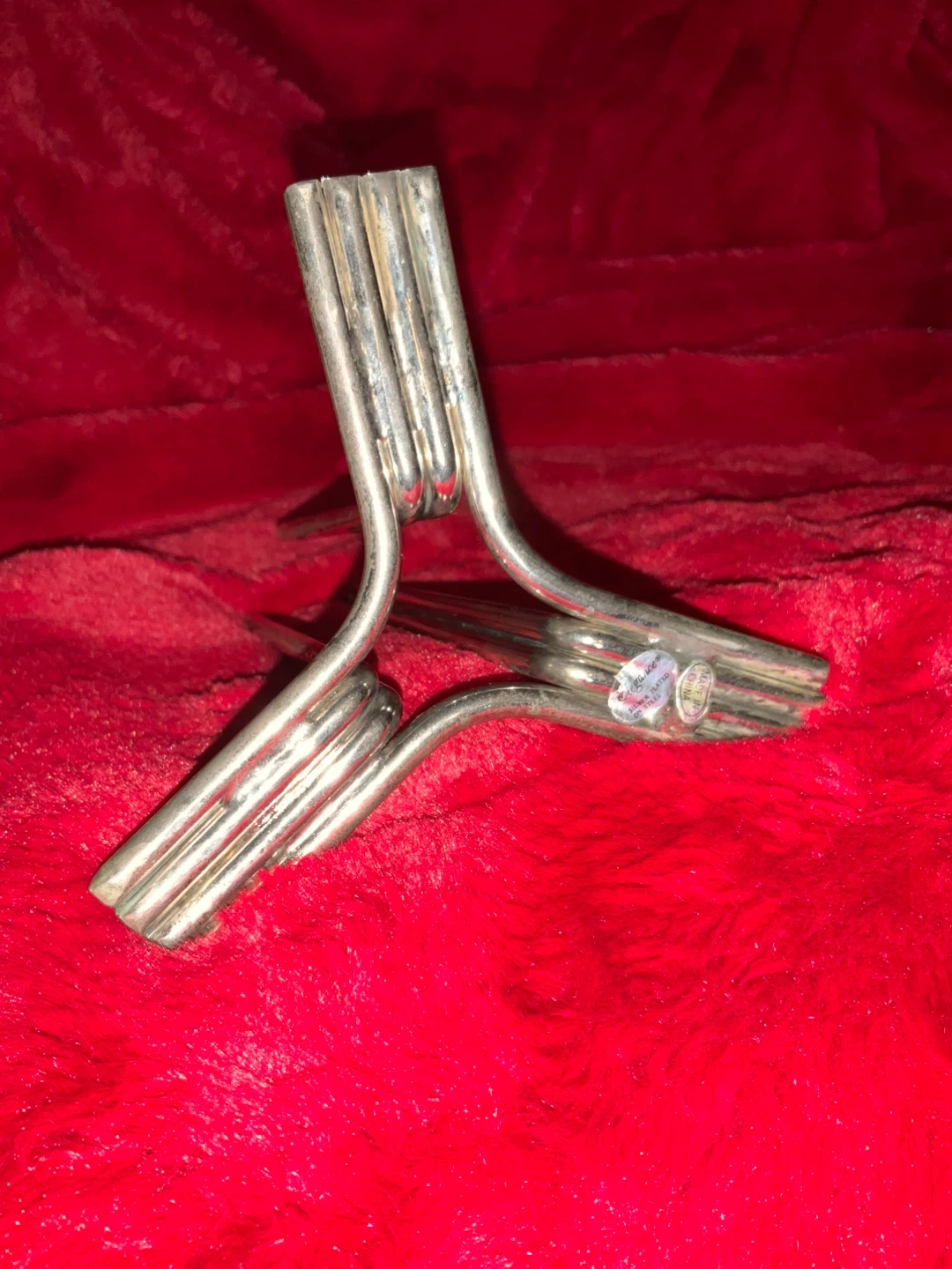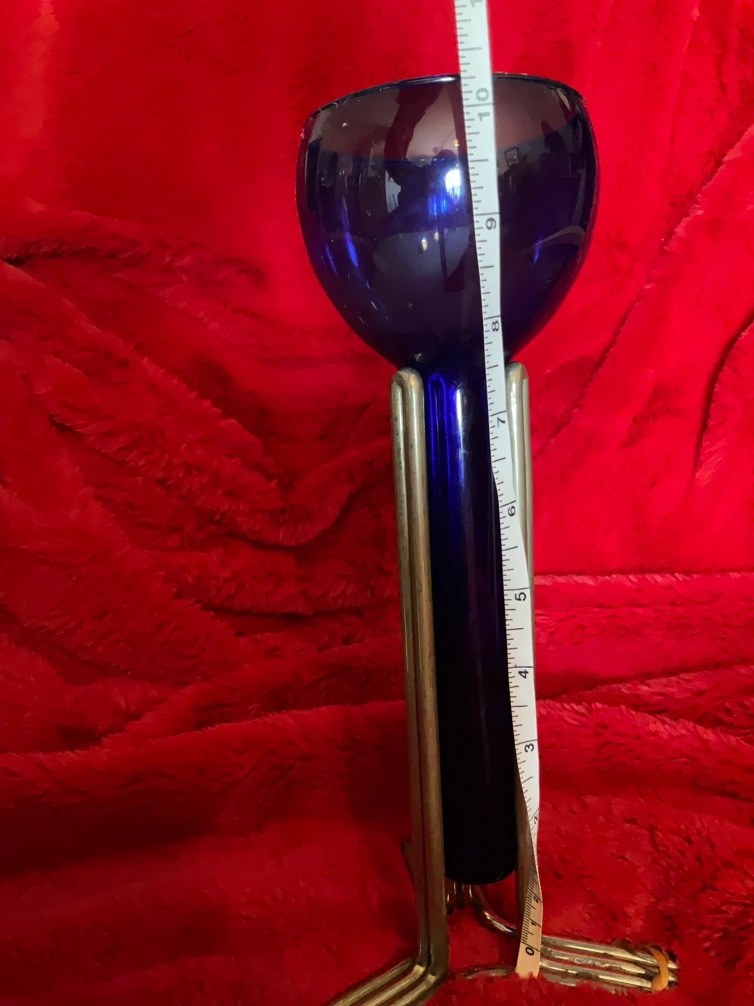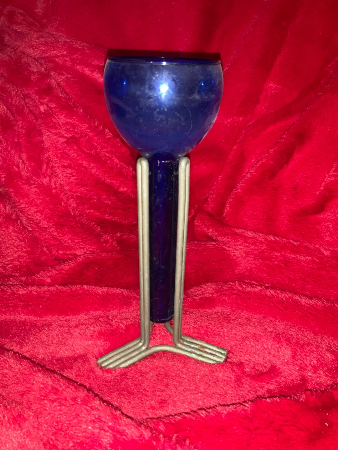 Selling a vintage Elegance vase with a cobalt blue glass insert and silver plated steel stand! It's a unique piece that would look great in any room
