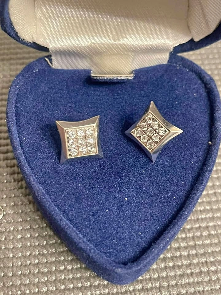 14K White Gold CZ Earrings with Screwbacks
