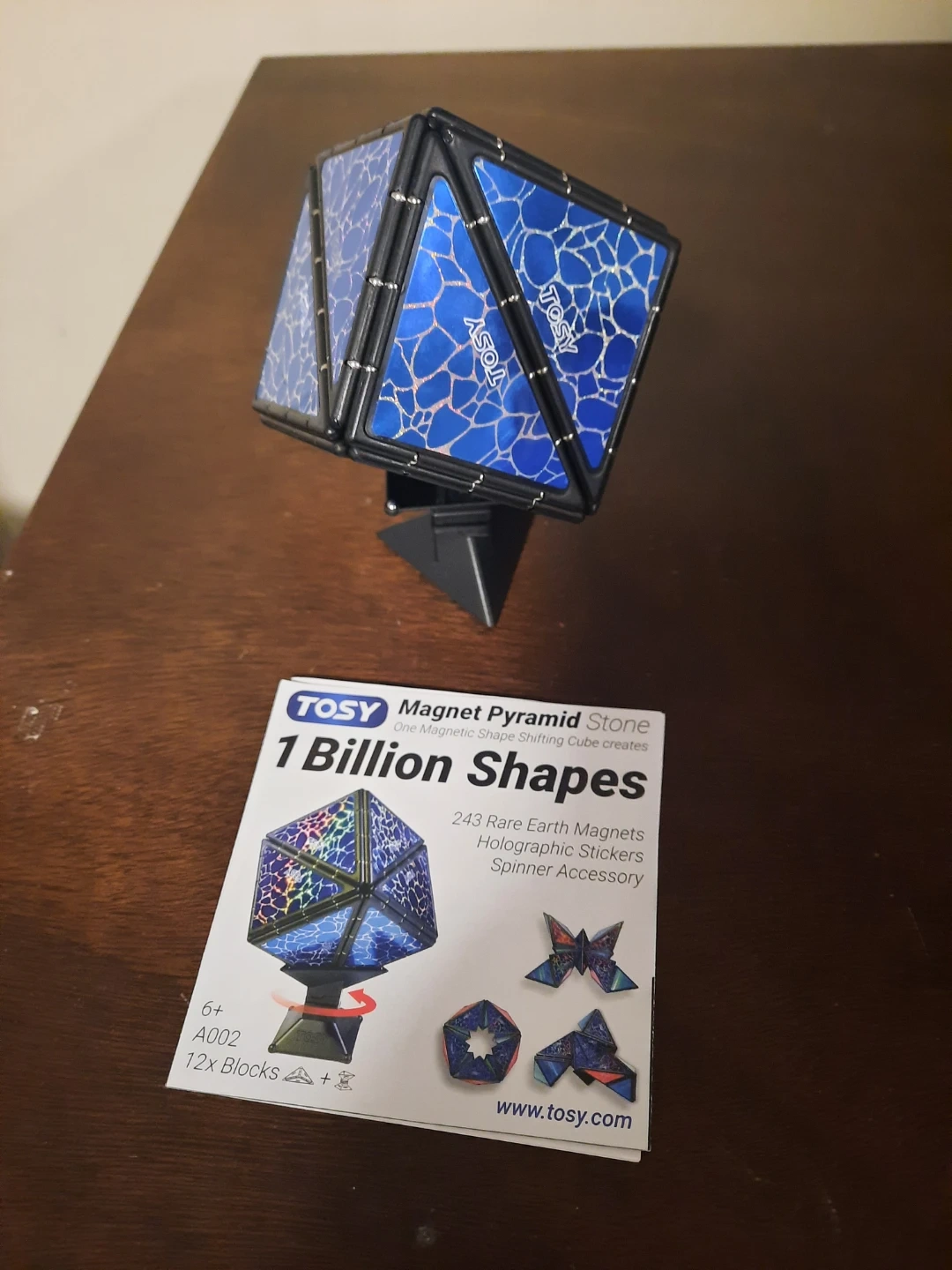 This TOSY Magnet Pyramid Stone allows for one magnetic shape-shifting cube to create 1 billion shapes. It's a spinner accessory with 243 rare earth magnets and holographic stickers. BOX IS OPEN. BUT CUBE IS BRAND NEW