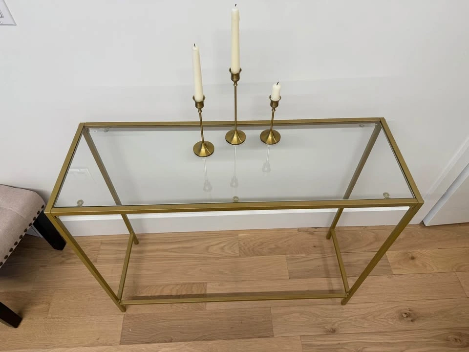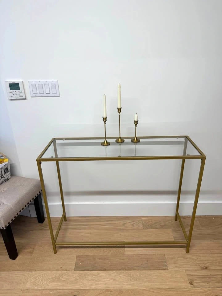 Buy & SellGold Rim Tempered Glass Console TableGold Rim Tempered Glass Console Table$50Gold rim glass console table for entry way or living room or bedroom.WHERE TO MEETCheck LocationView MapSELLERDeepika PDowntown Brooklyn100 reviews0 chats·1 favorites·5 viewsSEND CHAT TO SELLERHi Deepika P! I’m interested in your listing.Hi Deepika P! I’m interested in your listing.Get the Karrot app to chatSign In to chat