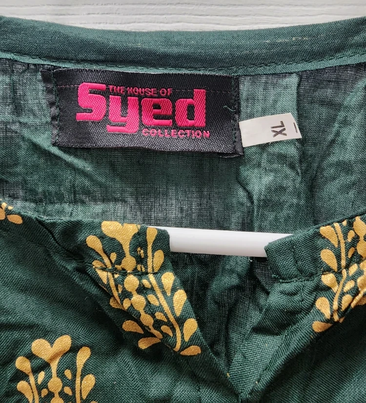 Selling a beautiful green dress from The House of Syed Collection! The dress is a size XL and features a lovely gold pattern. Perfect for a special occasion or just adding a touch of elegance to your everyday wear.