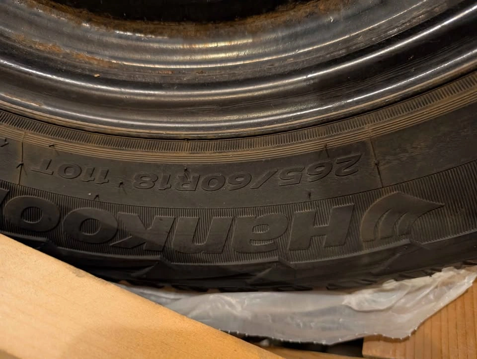 Hankook 265 60R18 with Rims and TPMS. They were balanced last season