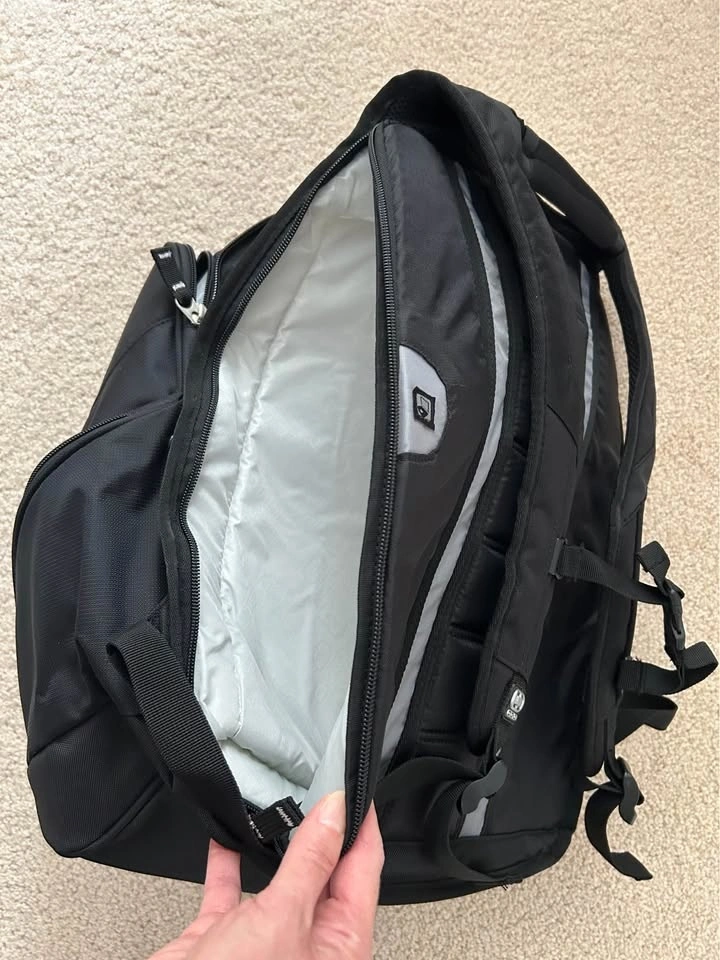 This is a brand new OGIO Mastermind backpack. It's a versatile bag with a huge center compartment and 12 well-placed pockets, perfect for executives or students. Features include a padded laptop sleeve that fits most 17" laptops, a front vertical file organizer, travel essentials sleeve, power cord and mouse storage, four large exterior pockets, a neoprene top grab handle, a weatherproof audio pocket with a headphone port, a sliding sternum strap, a deluxe organizer panel, and heavy-duty reinforcements. Bag capacity is 36.9 Litres. Dimensions are 19" x 14" x 10". Smoke and pet free home. Pick up in the Warden and Highway 7 area of Markham. Cash only.