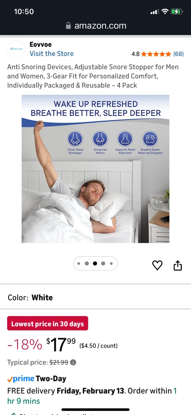 Eovvoe Anti Snoring Devices - White, 4 Pack