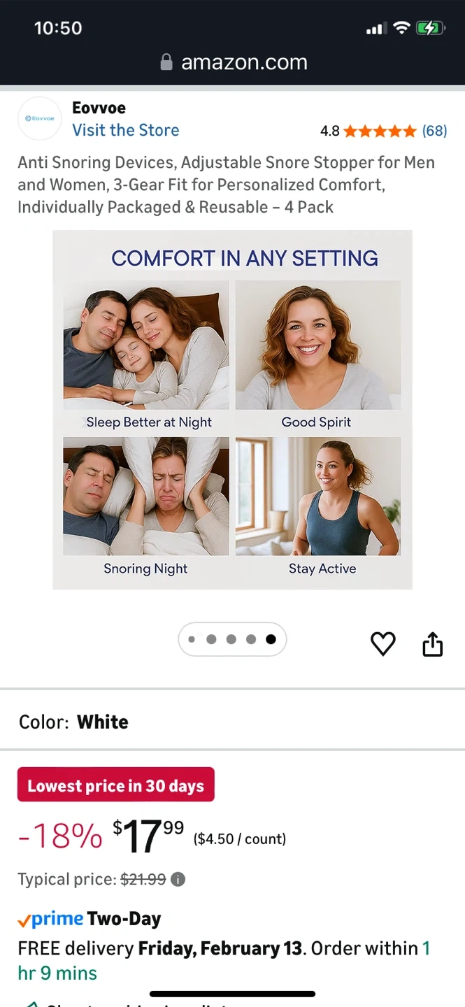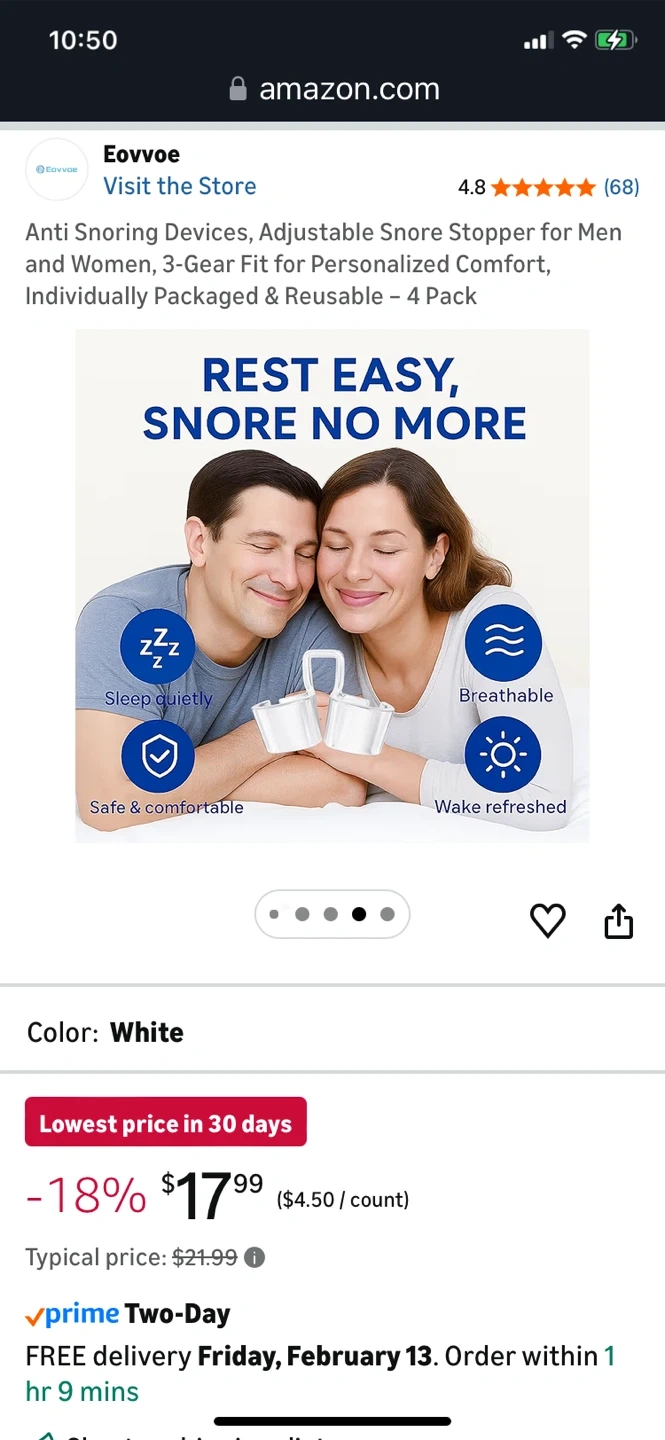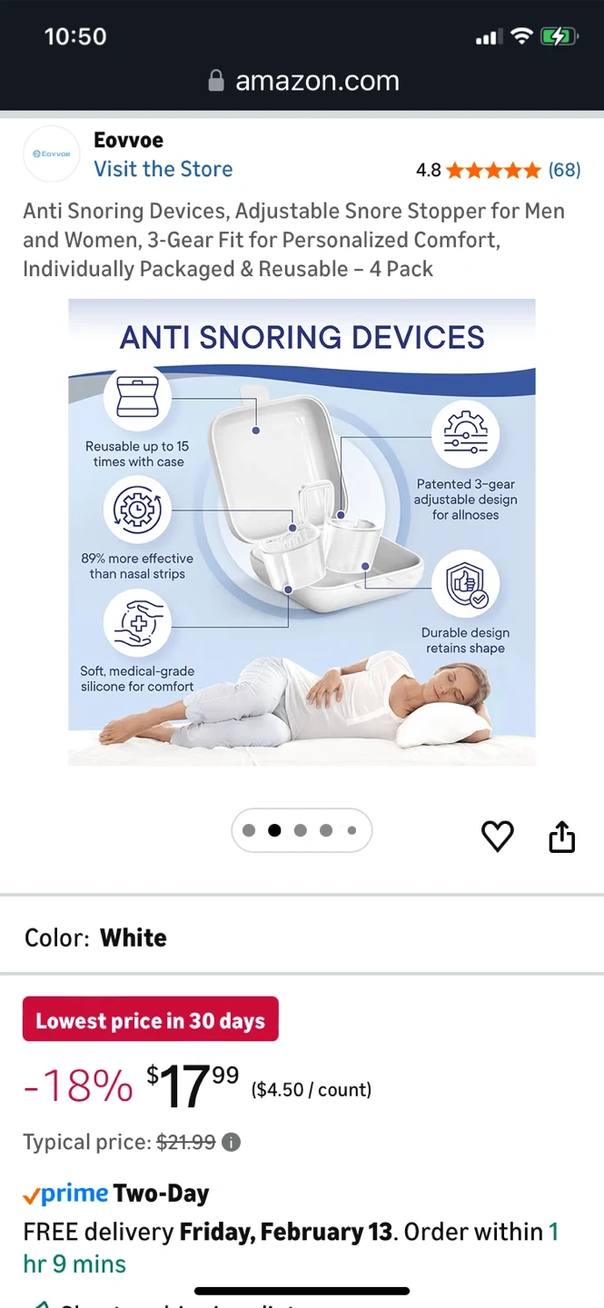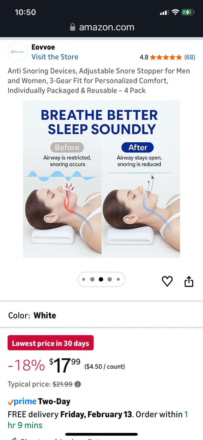 Eovvoe Anti Snoring Devices - White, 4 Pack